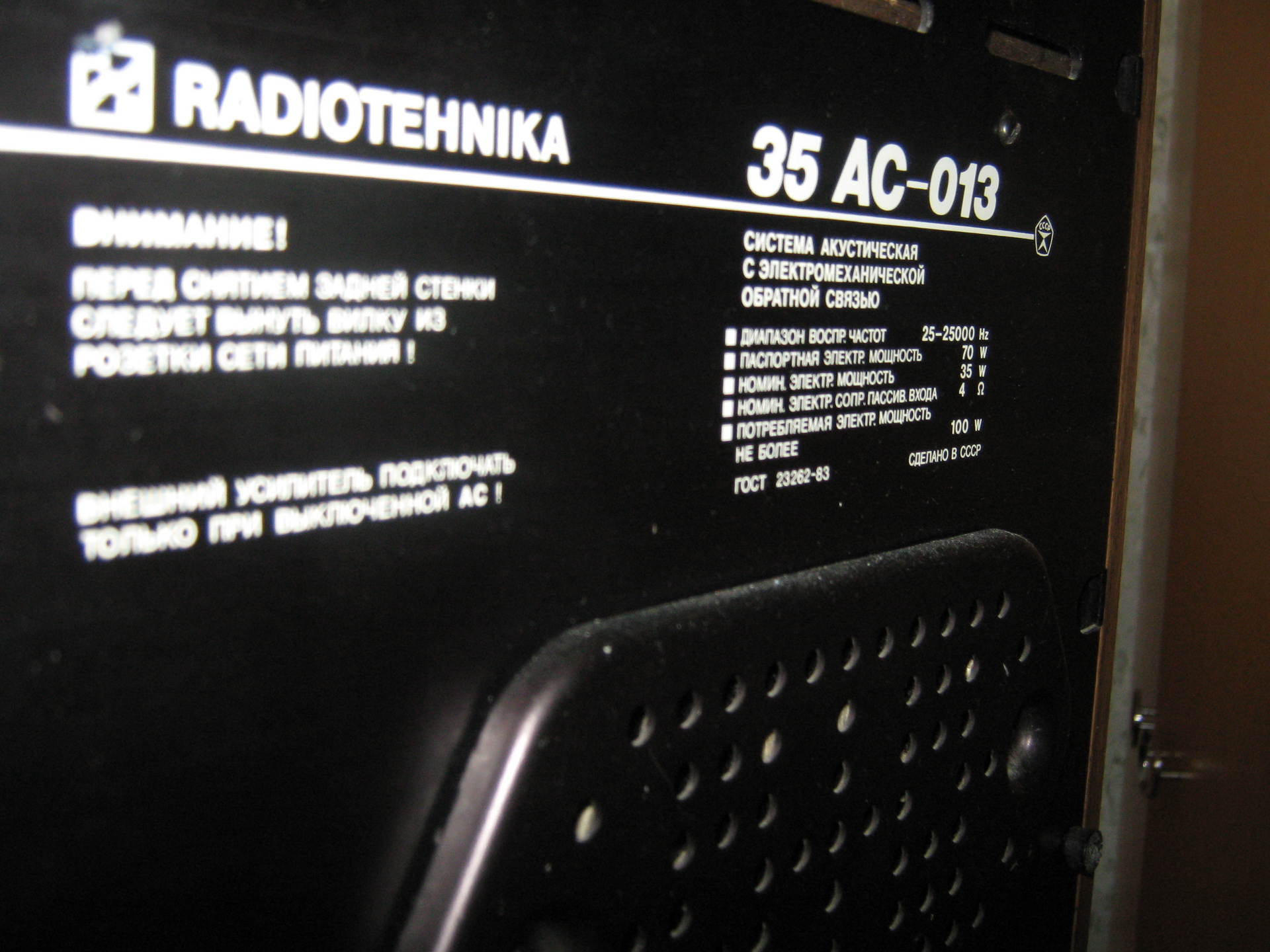 Диапазон воспроизводимых частот - 31.5...20000 Гц