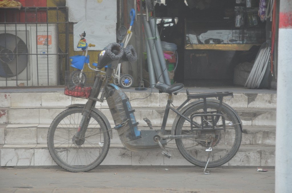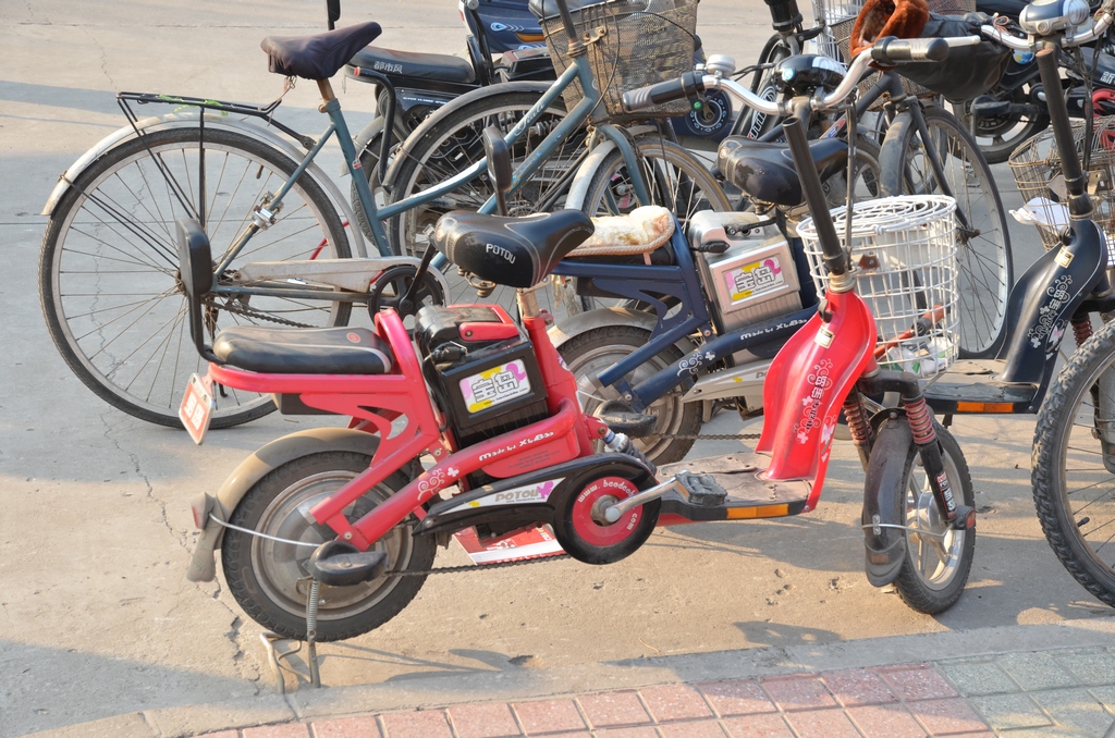 Фото сделано сегодня на "парковке" одного из китайских заводов. Подобные конструкции (равно как и бензиновые моторчики) и к велосипедам прикручивают.