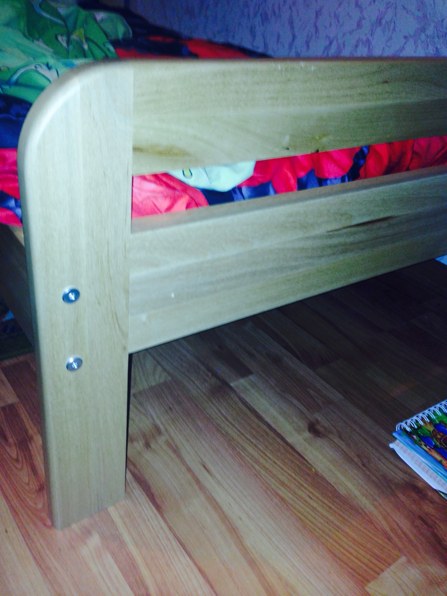 то, что углы закругленные-это хорошо, а передняя стенка кровати как на сайте? или то, как на Вашем фото-это с обоих сторон так кроватка выглядит?