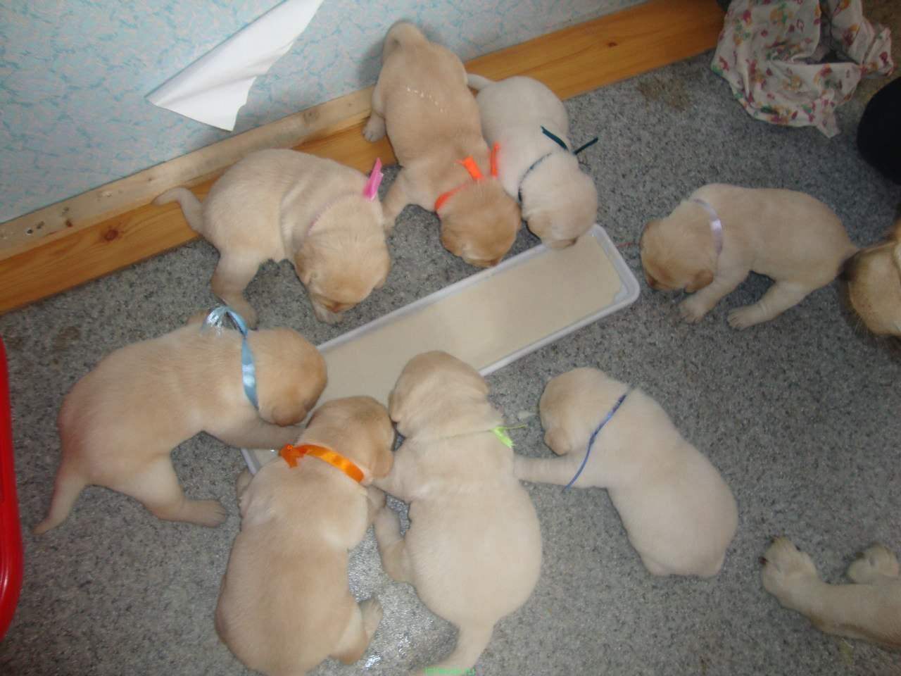 . Так вот это первые минуты кормежки. К сожалению, тот момент когда они закончили кушать мы не запечатлели. Все малыши были как поросюшки - и морды, и лапки, и пузики, и хвостики - всё в каше. Вот и представьте если поставить большую такую бадью на весь день.