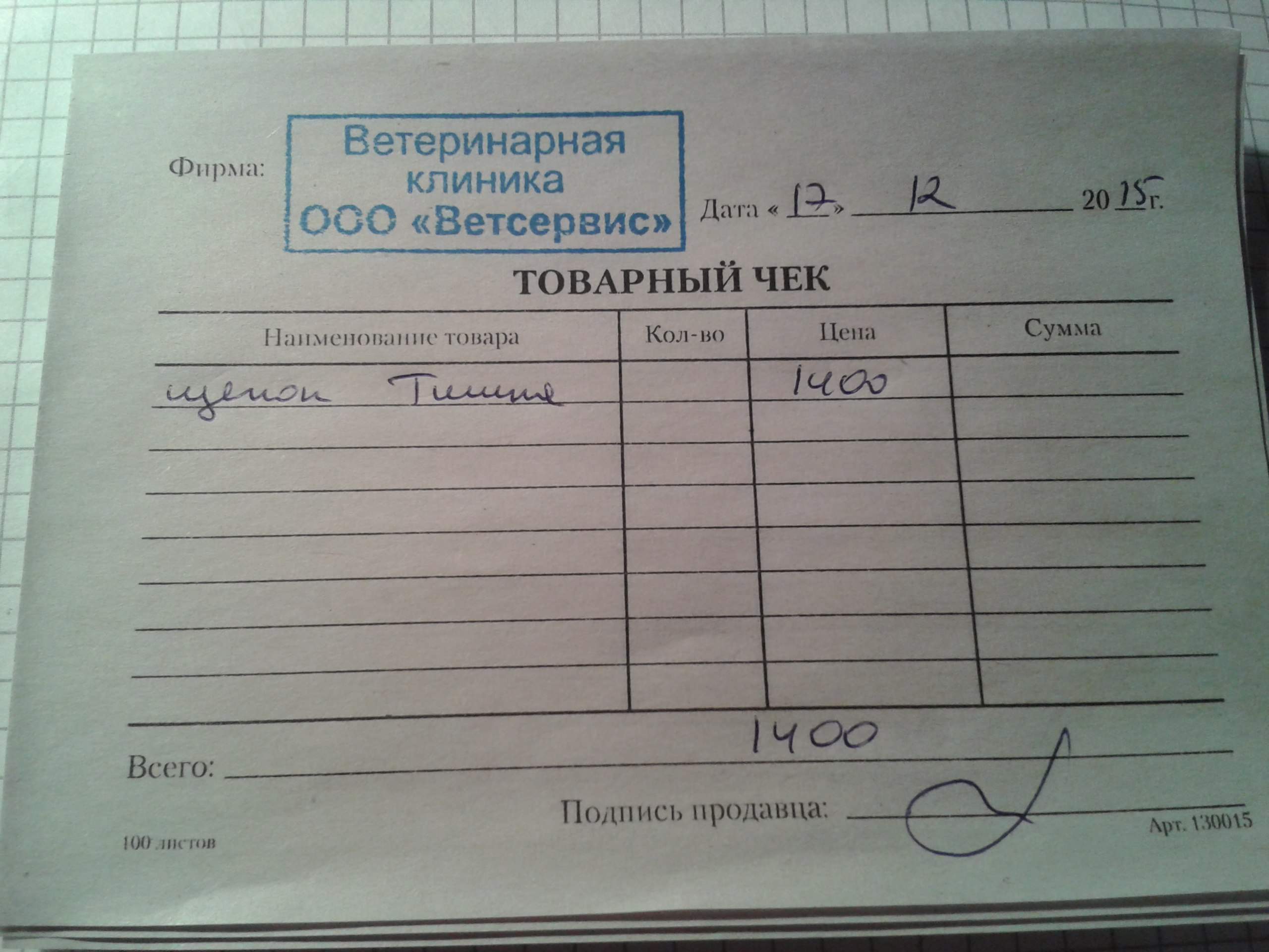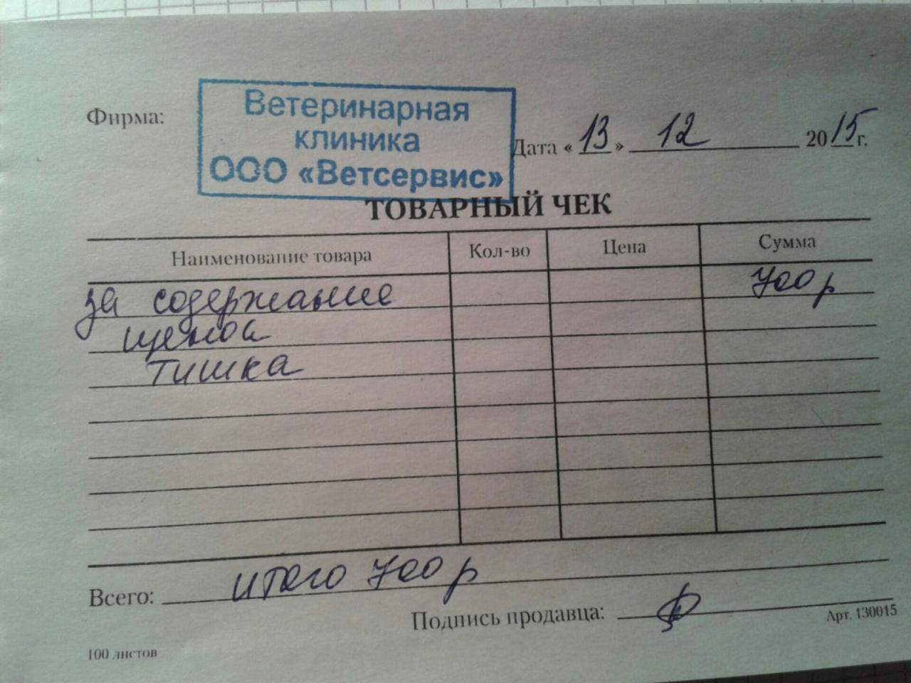 Оплатила в Ветсервисе часть долга - 700 рублей. На сегодняшний день долг в Ветсервисе за Тишу 3600 рублей.