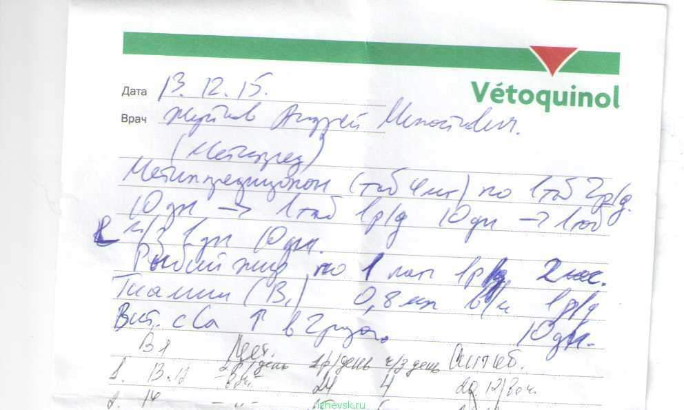 Вчера девушка Ольга, у которой сейчас находится Тишка на передержке, свозила его на консультацию к Жуйкову, чтобы у него постараться выяснить что же с малышом. Жуйков, посмотрев рентген и анализы крови, сказал, что у Тишки травма и инфекция. Немного подкорректировал лечение, назначив витамины кальций и циклоферон. За консультацию и препараты вышло 721 рубль.