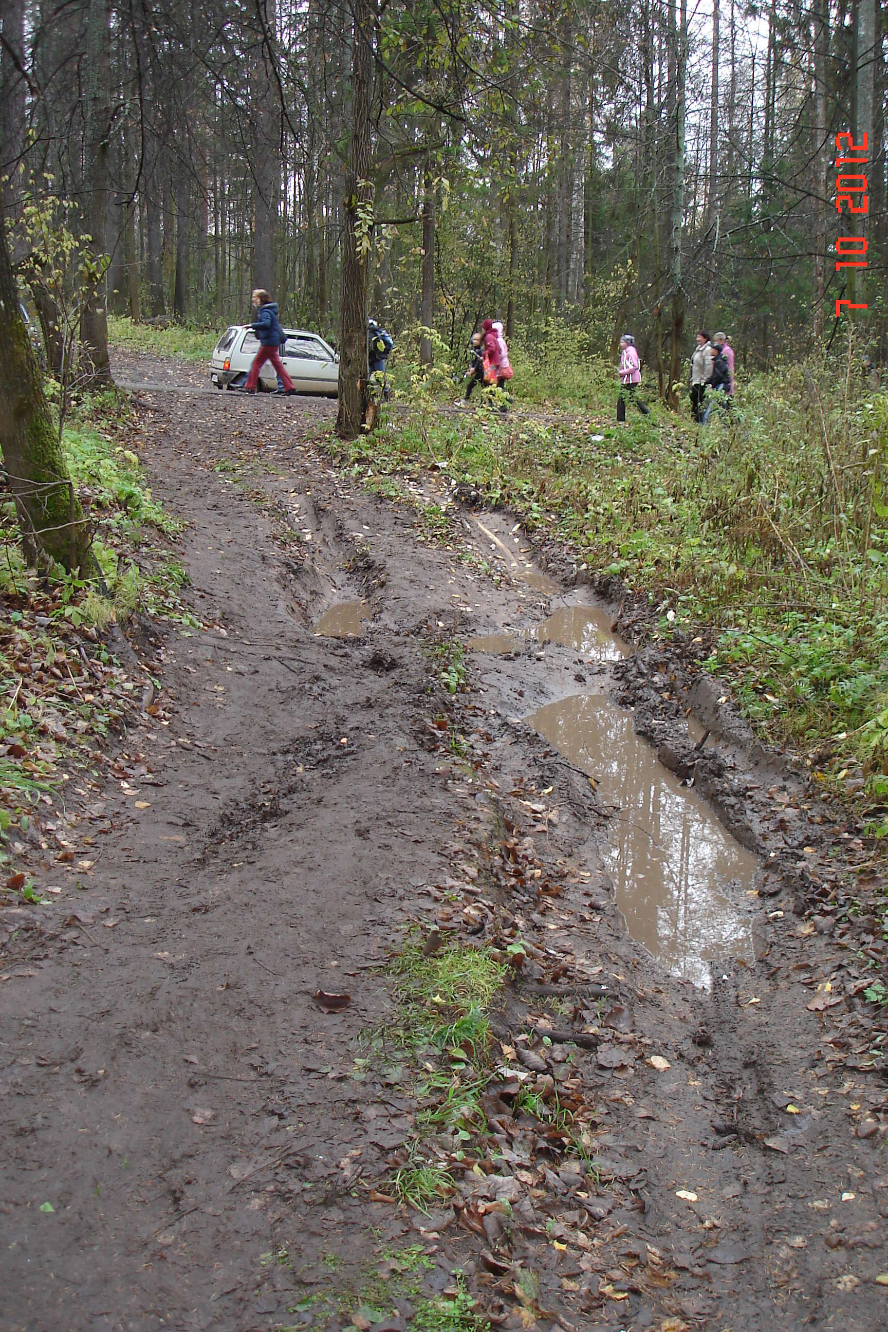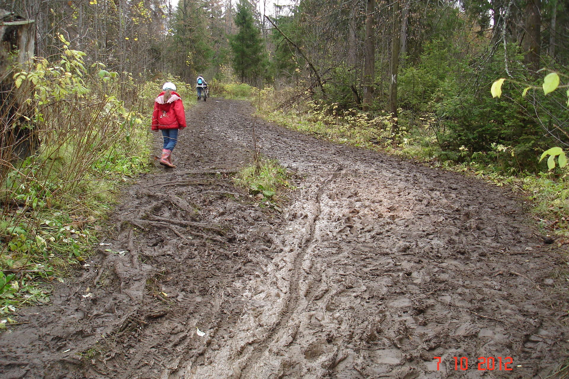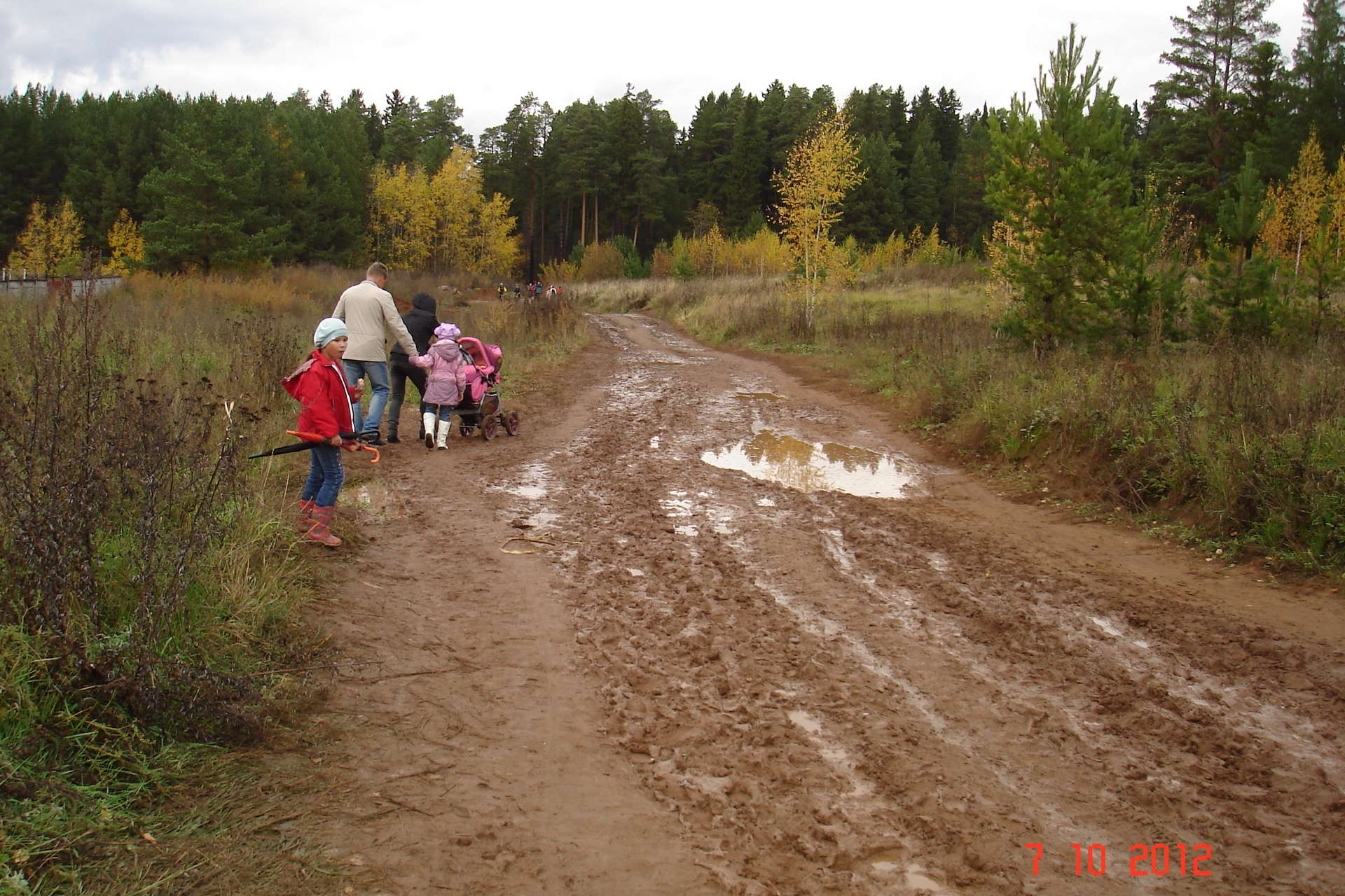 Несмотря на грязь, люди шли даже с колясками