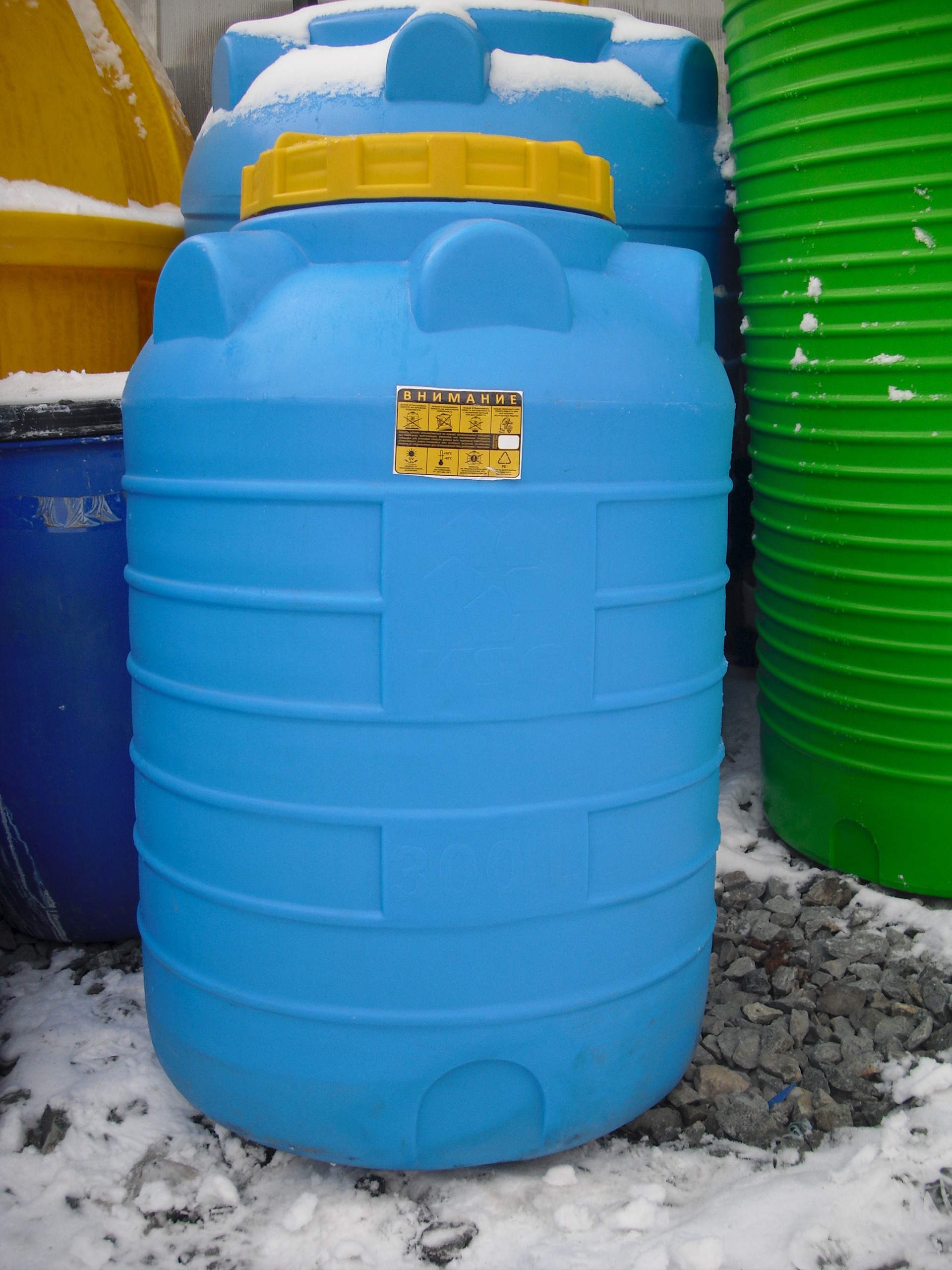 Цилиндрические вертикальные ёмкости от 500л имеют в комплекте поплавковый клапан и сливной кран.
