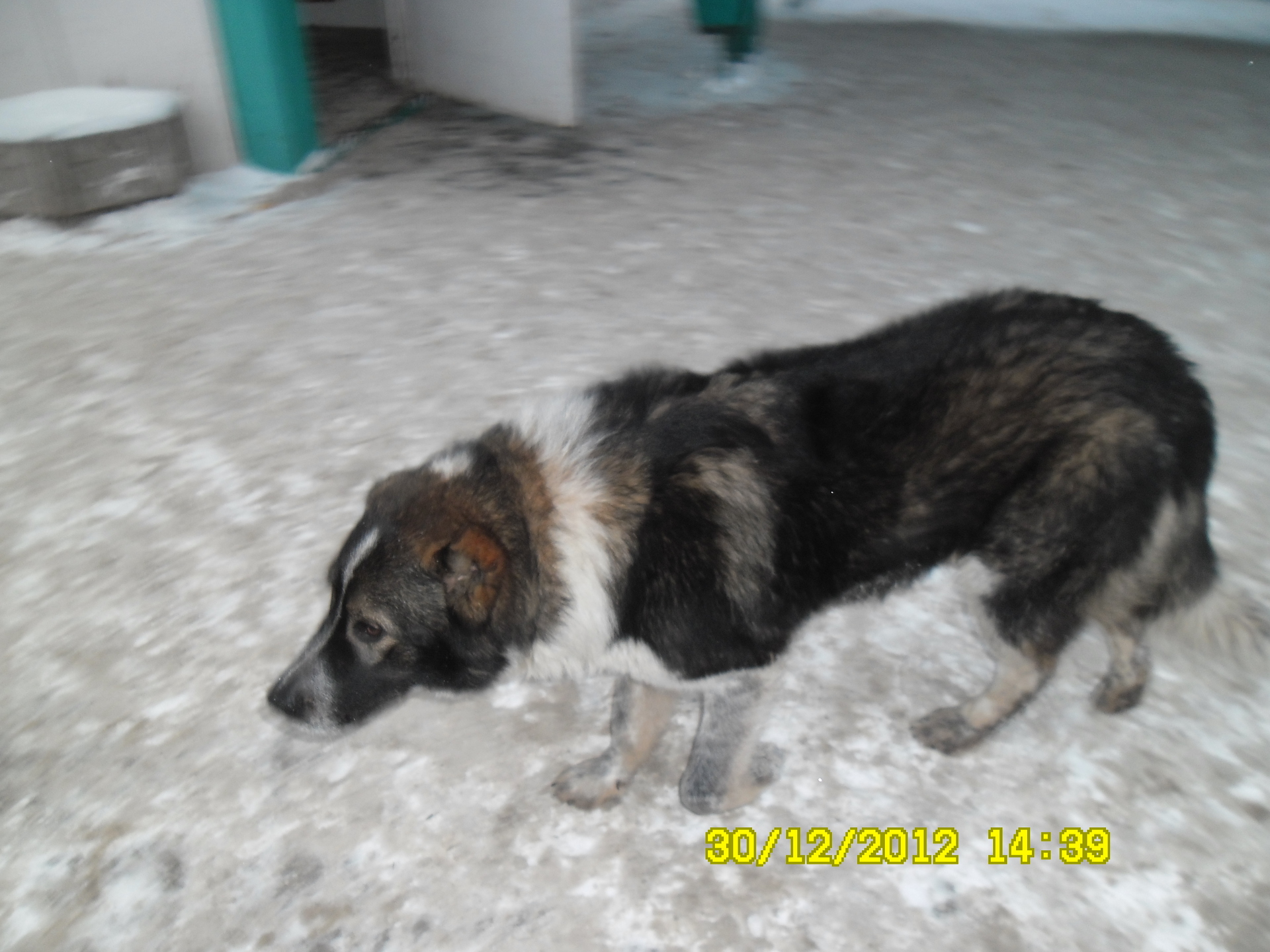 Сегодня 05.01.13г. опять появился.Девушка с группы 2 часа была с ним.(накормила-т.к.пес очень голодный и худой) обзвонила всех..но так никто и не откликнулся о помощи с передержкой на 1-2 дня...До подъезда идет-но не заходит.