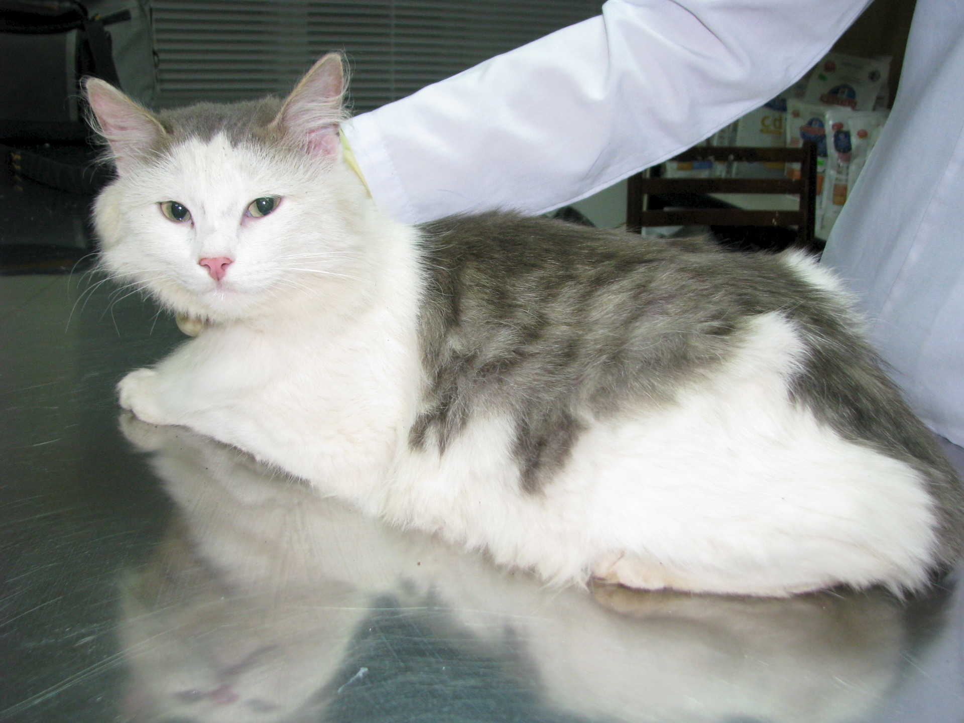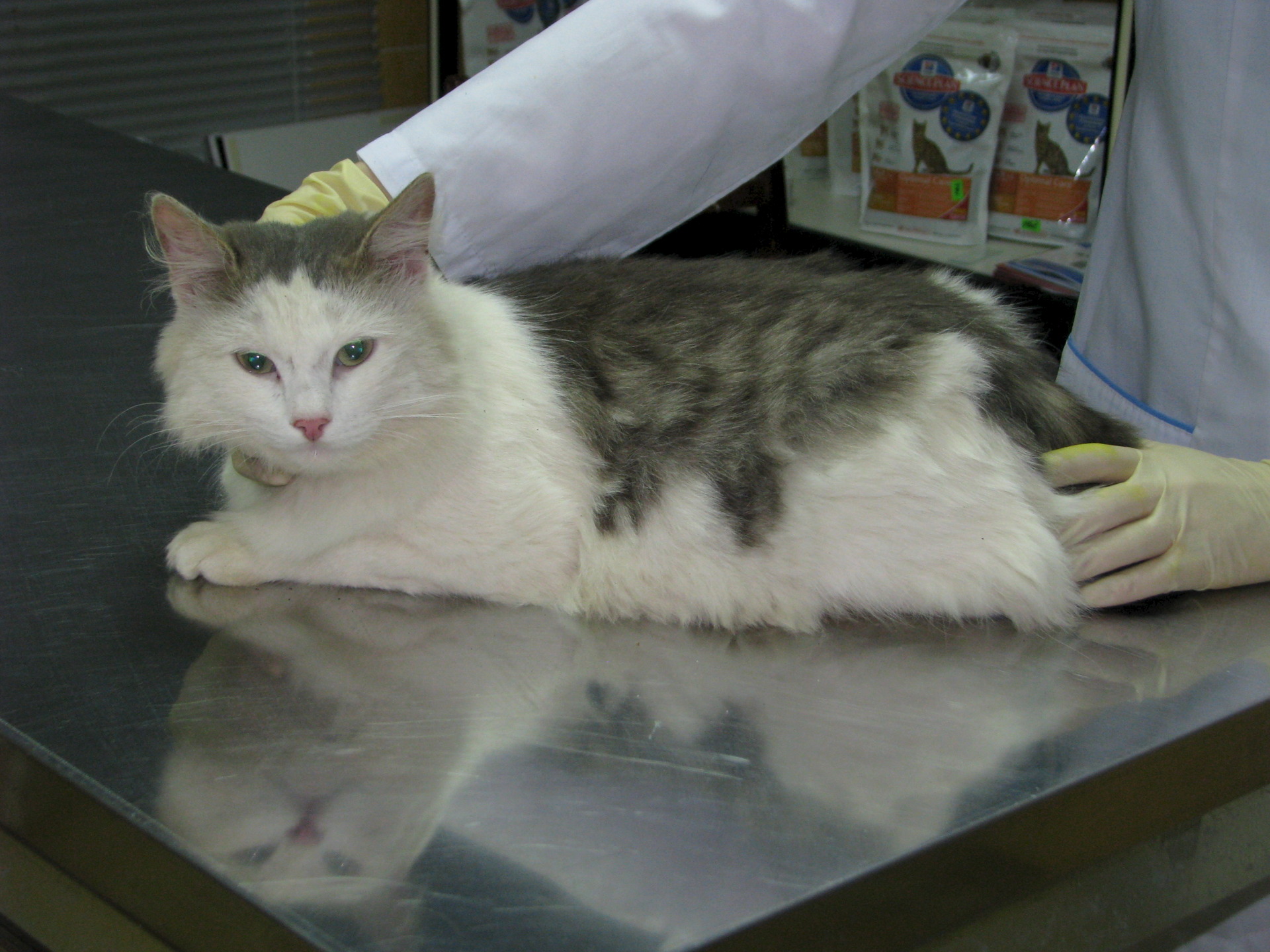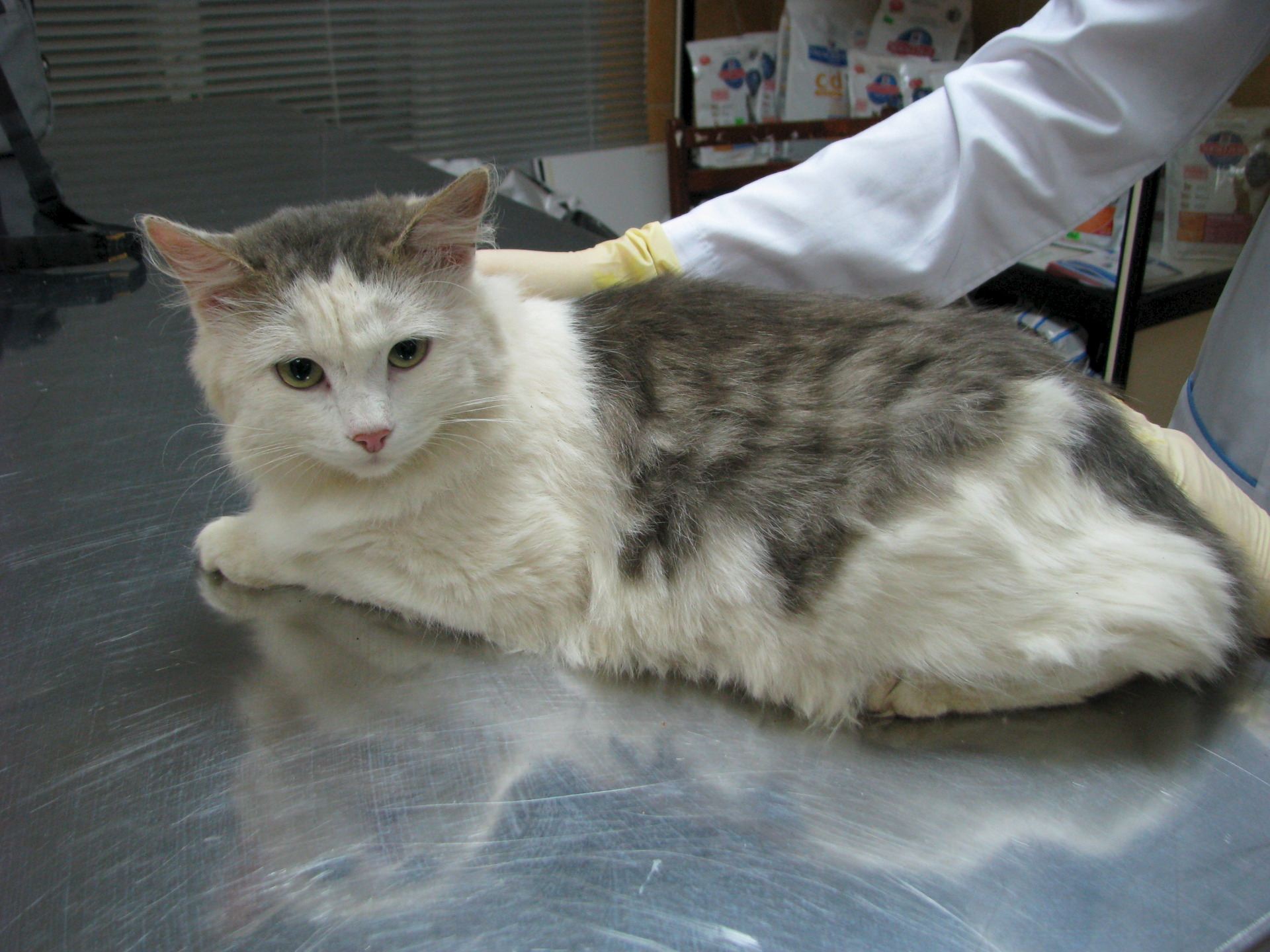У меня очередной бомжующий подобранец. Знакомьтесь - это кот. Большой, пушистый, черезвычайно мягкий, я бы даже сказала, плюшевый (не смотря на то что грязный) котище. Кот жил прямо на улице, сидел, спал прямо на траве в любую погоду, даже в дождь он почему-то не искал укрытия. Вобще весь вид его показывал, что ему все безразлично, погода, люди, собаки... во взгляде кота была полная апатия. Кода увидела его первый раз уже взяла другого кота, для этого места не было и я уехала, но никак его взгляд у меня из головы не выходил и я на следующий день вернулась за ним. Кот был на прежнем месте, спал прямо на мокрой траве, апатично посмотрел на меня из под опущенных век, всем видом говоря "делайте со мной что хотите, мне уже все равно". Я даже сначала была уверена, что это кошка, причем беременная и как оказалось не одна я так думала))), морда у него девчачья, сам круглый)... Привезла кота на осмотр, осмотр показал, что это котик и он молодой, около 3 лет, клинически здоров. Котика обработали от паразитов (блох было видимо не видимо, на одной фотографии их даже видно на белом лбе), почистили ему уши и кот преобразился, реально)))... Когда ему чистили уши, у него выпали такие пробки, как-будьто кто ему специально затычки в уши сделал. У кота, как оказалось, большие и круглые глаза. Он даже выпрямился весь, а то все сидел скукоженный и весь его вид показывал: " Люди, я вас слышуууууу!!!" У кота замечательный характер, он спокойный, уверена, что очень ласковый, как мышелов не сгодится, инфантилен, ловить не будет, сгодится, как любимая подушка, красивая, мягкая и уютная))). Очень подойдет для любви и обажания))), ему это сейчас совершенно необходимо. Про лоток пока со сто процентной уверенностью не скажу, но первый раз сходил в лоток, а там поглядим. Кота мы сразу кастрировали, в воскресенье помоем и выложу новые фото. Обратите на котика внимание, он будет вам добрым, благодарным другом. Конт. тел. 89199003036 или мой 89634823670