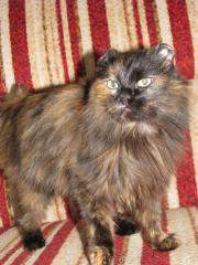 Назвала девочку Стася. Стасеньке 1,5-2 года, она миниатюрного размера, как котенок подросток...очень ласковая, ну ооочень... очень красивая, своей самобытной красотой...с пушистой, шелковистой, черепашьей шубкой и очень разговорчивая). Стася кушает как сушку так и натуралку, прекрасно пользуется лотком, обработана от паразитов, стерилизована.