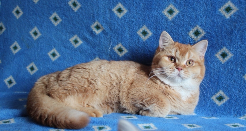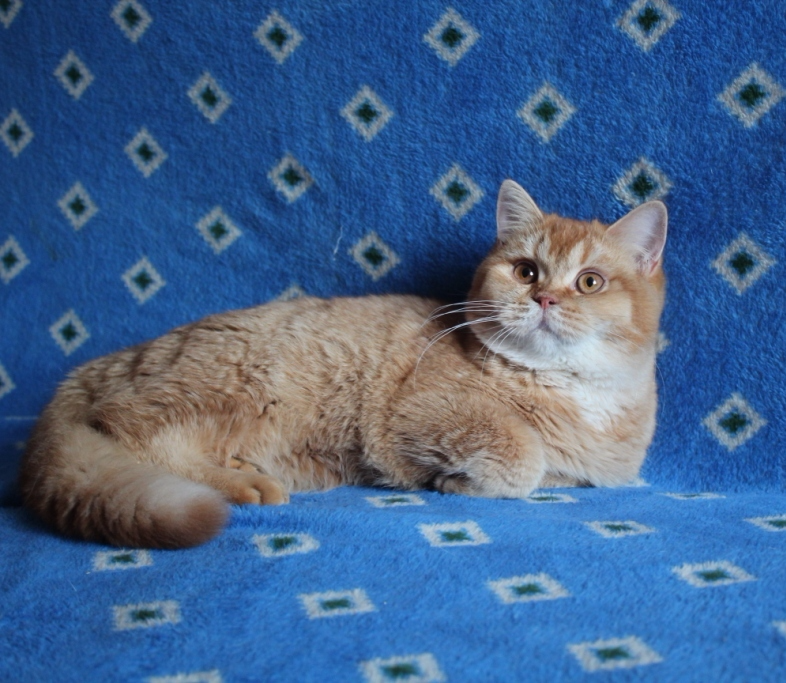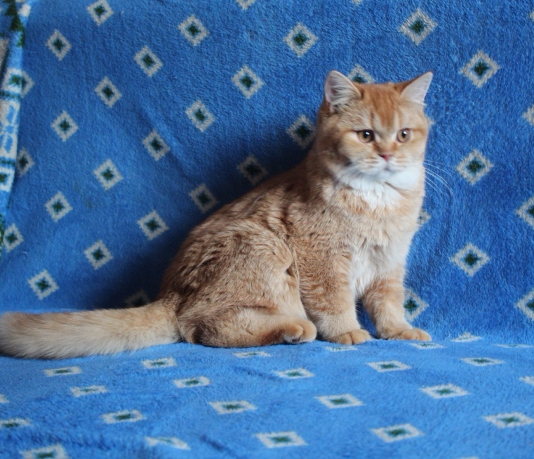 Кошка имеет короткое и широкое тело, круглые линии головы, хорошо набита шерсть, окрас безупречен, без маркеров. Кошка очень перспективна!