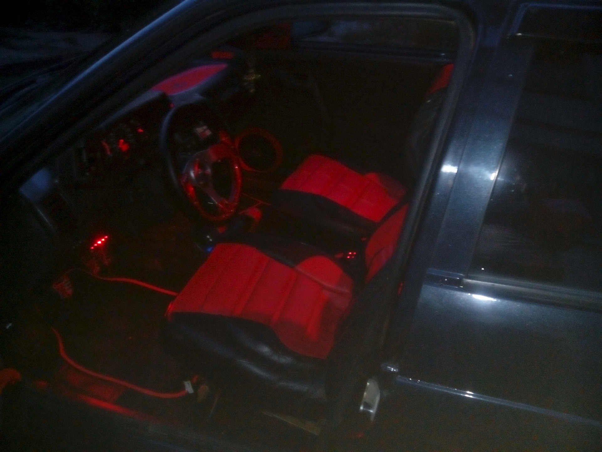 Чехлы салон сделан под черно-красный, подсветка салона.