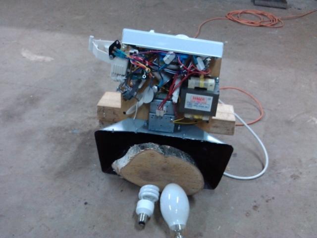 Есть ли спецы по СВЧ? Хотел бы получить консультацию по конструктиву эффективного волновода. Отсебятина не прокатила. Было собрано вот такое устройство-задача которого-уничтожение короеда в деревянных конструкциях. К сожалению излучатель оказался неэффективен и подопытные опарыши могли бесконечно долго находиться прямо перед магнетроном, в стандартной печке их разрывает за 10 секунд. Хотя люминисцентные лампы горели на расстоянии 10-15 см от магнетрона. В чем ошибка? Подозреваю, что в больших размерах излучателя. Конечно самое простое было бы вынуть волновод из подопытной печки, но тогда ей кирдык, а хотелось бы её эксплуатировать и дальше, собрав обратно.