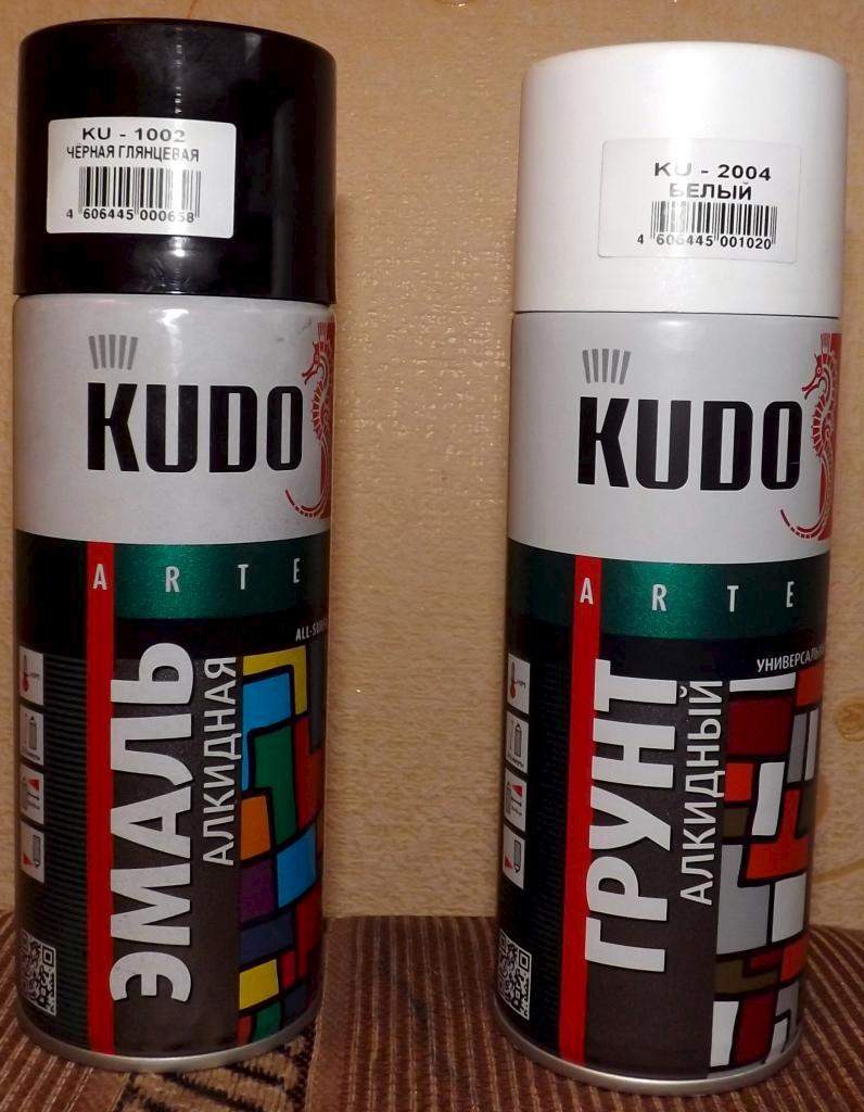 Так как мы вроде как хотим чтобы все это не отвалилось в ближайшее время то нещадно тратимся и покупаем в ашане и грунтовку и краску в баллончике по 150 руб каждая:
