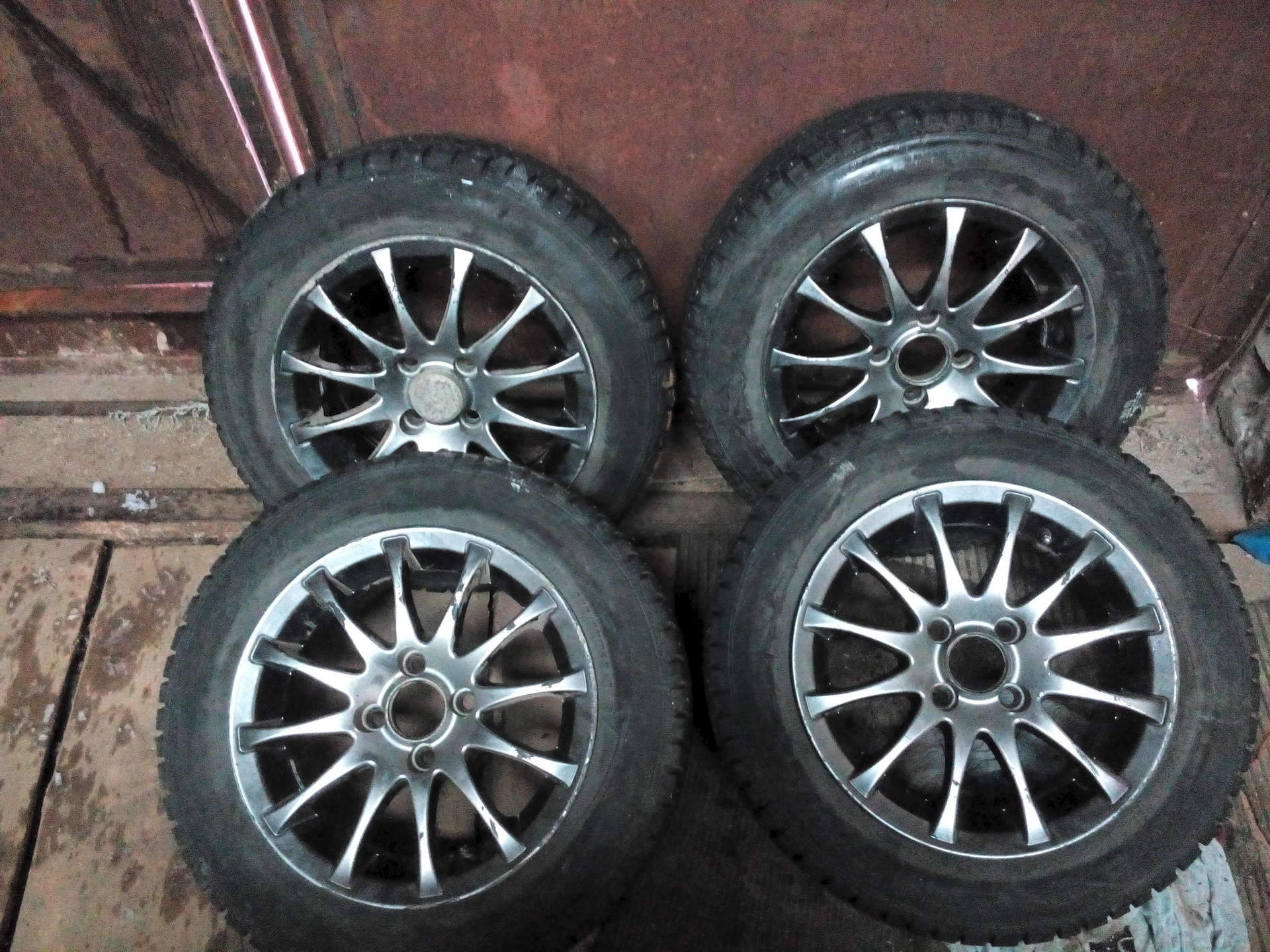 Литьё R14 4*100 с зимней резиной Contyre 175/65(б/у полтора сезона, пробега мало около 2 тыщ) на 4 покрышках не хватает 3 шипов. 9000 руб. тел.912 858 87 95.