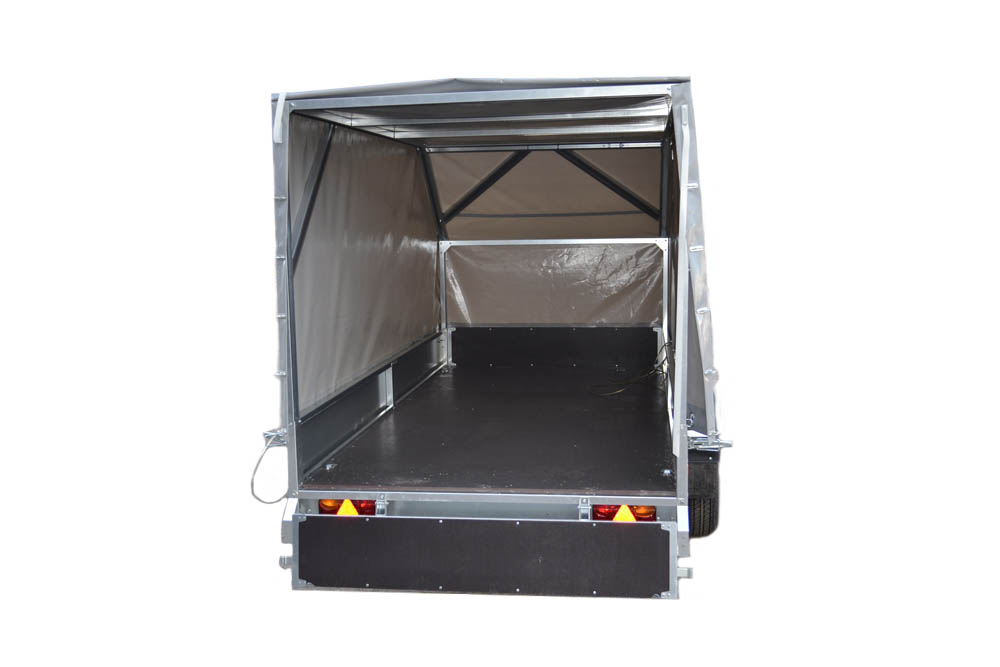 Одноосный прицеп к легковому автомобилю полностью изготовлен из качественного оцинкованного (с хроматированием) листа европейского производства с толщиной цинкового покрытия не менее 20 мкм. Настил платформы и внутренние поверхности бортов выполнены из влагостойкой фанеры армированной сеткой. Прицеп комплектуется дугами и тентом двух типоразмеров, передним опорным колесом. Стенки тента открываются с любой из четырех сторон. Ось усиленная Ø60 мм. Прицеп может эксплуатироваться как с легковыми автомобилями с низко расположенным фаркопом, так и с высокими полноприводными автомобилями.
