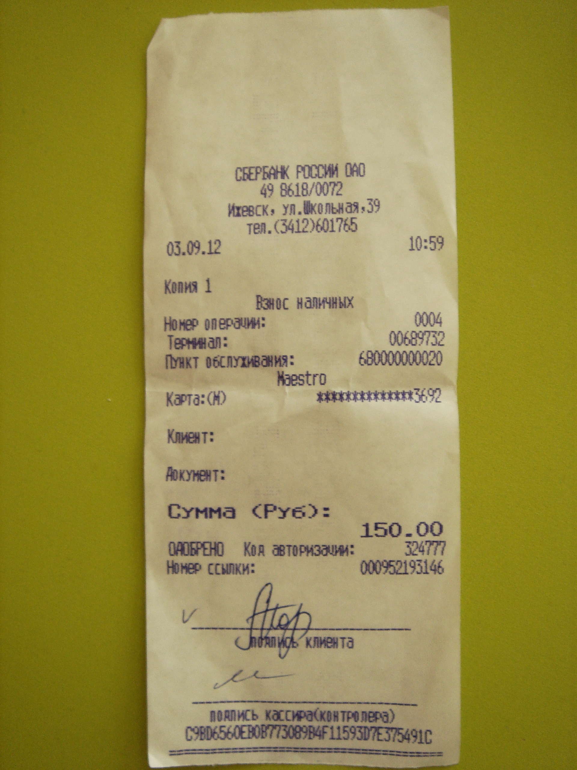 оплатила с карты 6761хххххххх1004