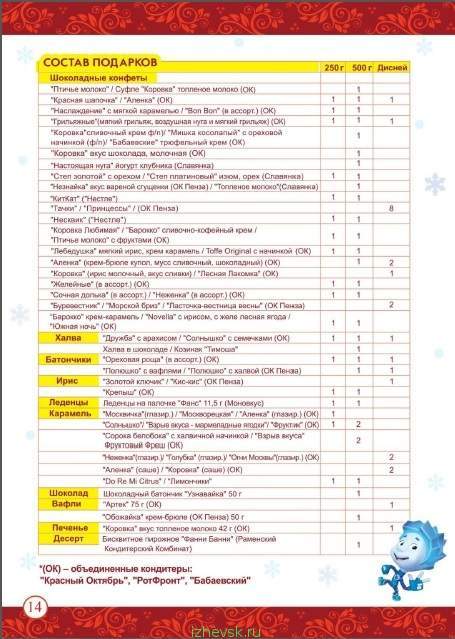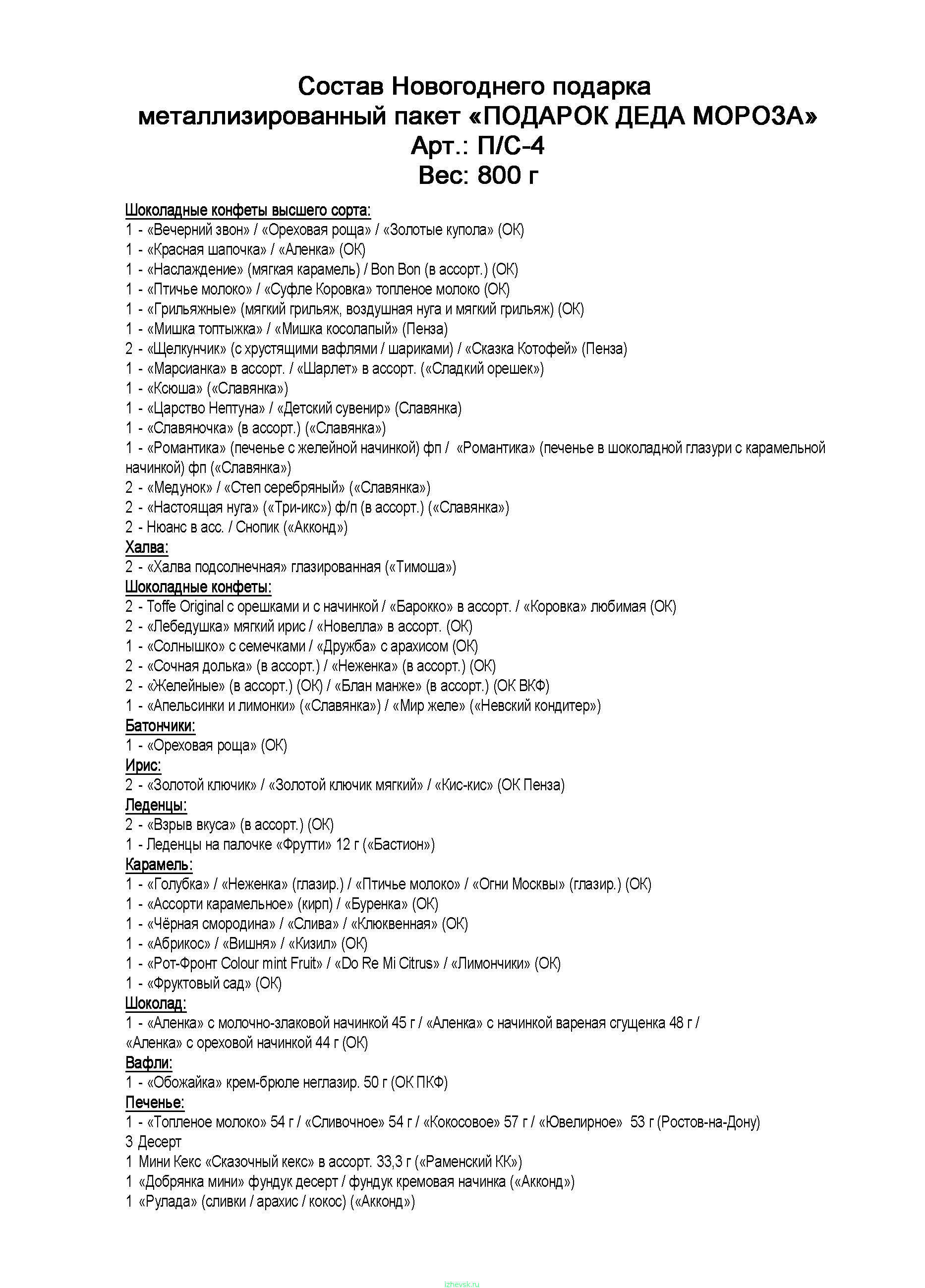 СОСТАВ ПОДАРКОВ