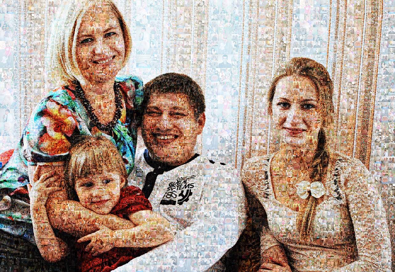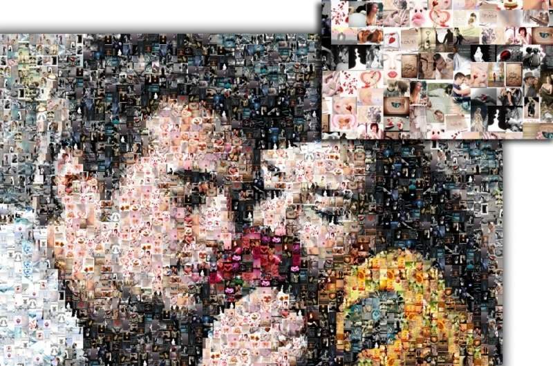 Фотомозаика - это картина из сотен небольших фото размером от 1 до 3 см. Издалека они выглядят как одно изображение, а вблизи - как отдельные фото.