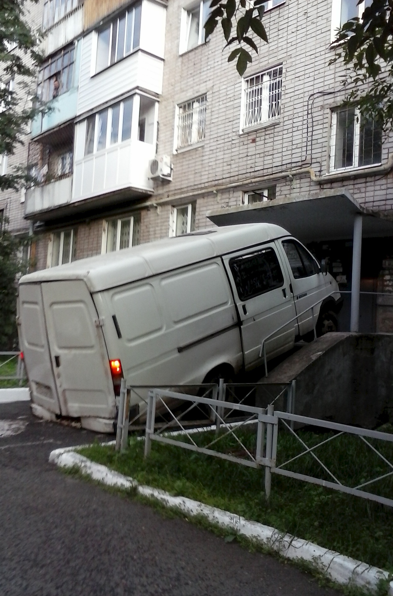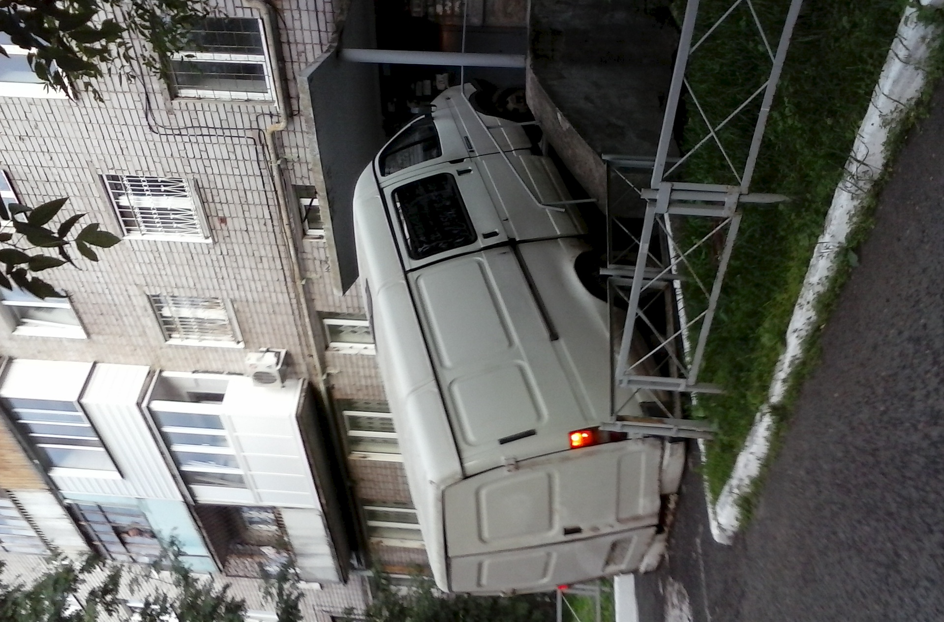 Ситуация следующая. Приехал по делам по адресу. Оставил авто. Пока ходил, случилось нечто. Пришёл, вижу, Газель припаркована необычайно интересно. Всякое подумалось, промелькнуло в это время в сознании, но не подумал, что водила пьян. Об этом сказали люди, которые были тому свидетелями и фотали на планшет сие.