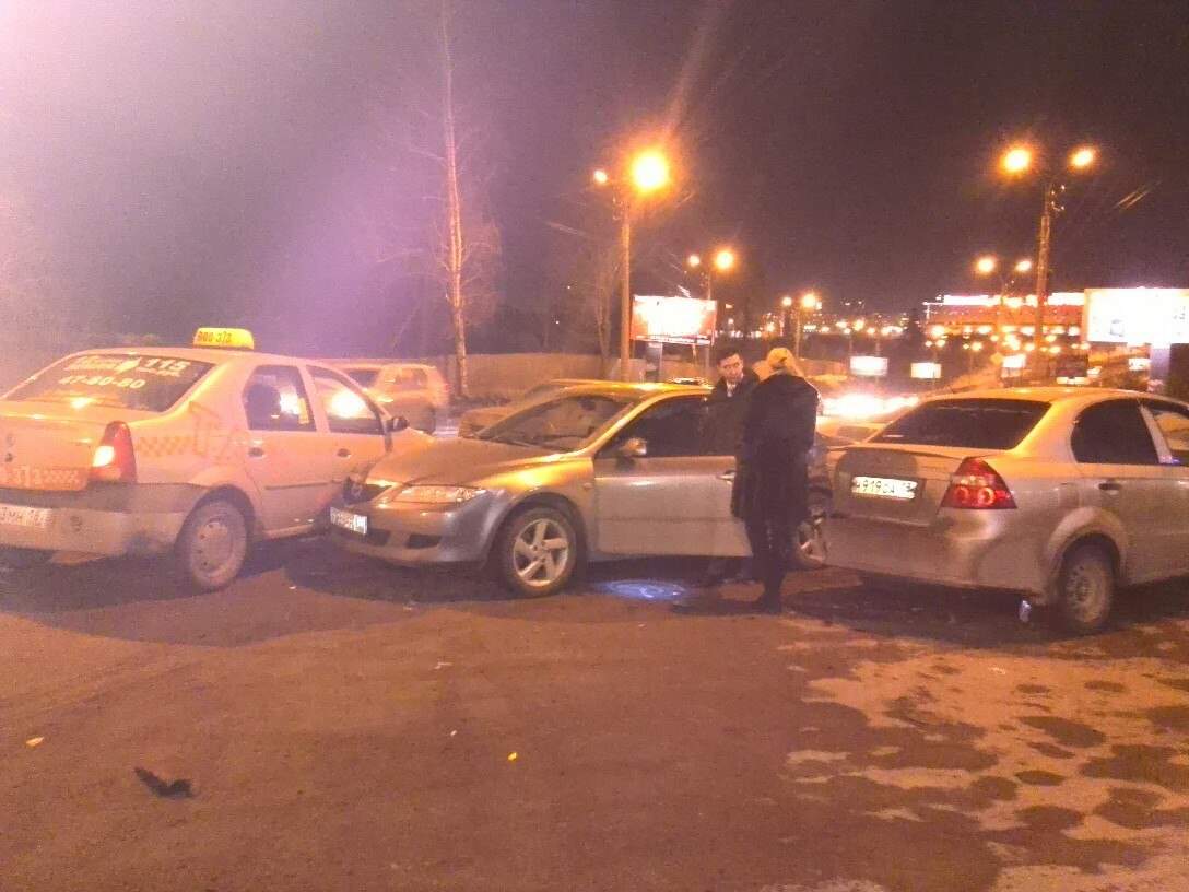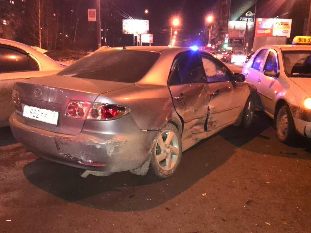 - Мы с женой были на мерсе. Что скажем, ехали в сторону талисмана, причем перед этим на светофоре, простояли на красном. Тронулись и не успев набрать скорость откуда ни возьмись выскочила мазда пересекая 2 сплошную. Видимо хотел припарковаться к ижтрейдингу, да не расчитал расстояние. В рез-те мы въехали в него, его развернуло от удара и он задел 2 стоящие на парковке машины и царапнул логан, который ехал за нами. Итого: мы до сих пор в шоке, разбита раритетная тачка и будет потрачено куча времени, но слава Богу все живы.