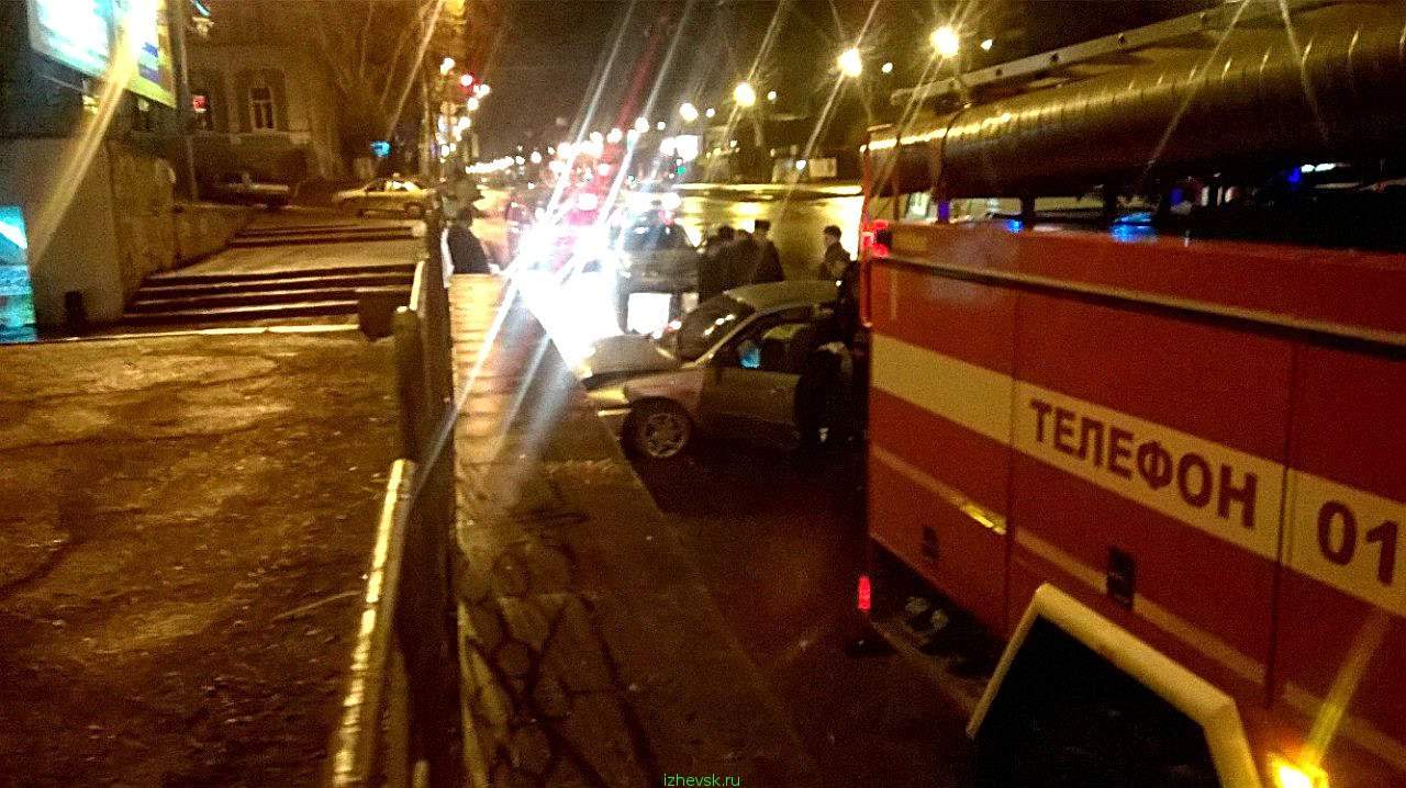 Водитель автомобиля <КИА Спектра> двигался по улице Максима Горького, на пересечении с ул. Кирова столкнулся с автомобилем <ВАЗ-2114>, после чего в попытке скрыться с места ДТП, водитель автомобиля <КИА> не справился с управлением и врезался в бетонное ограждение.
