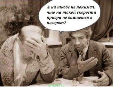 А на шкоде не понимал, что на такой скорости приора не впишется в поворот?