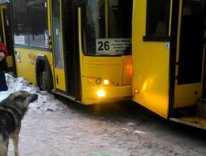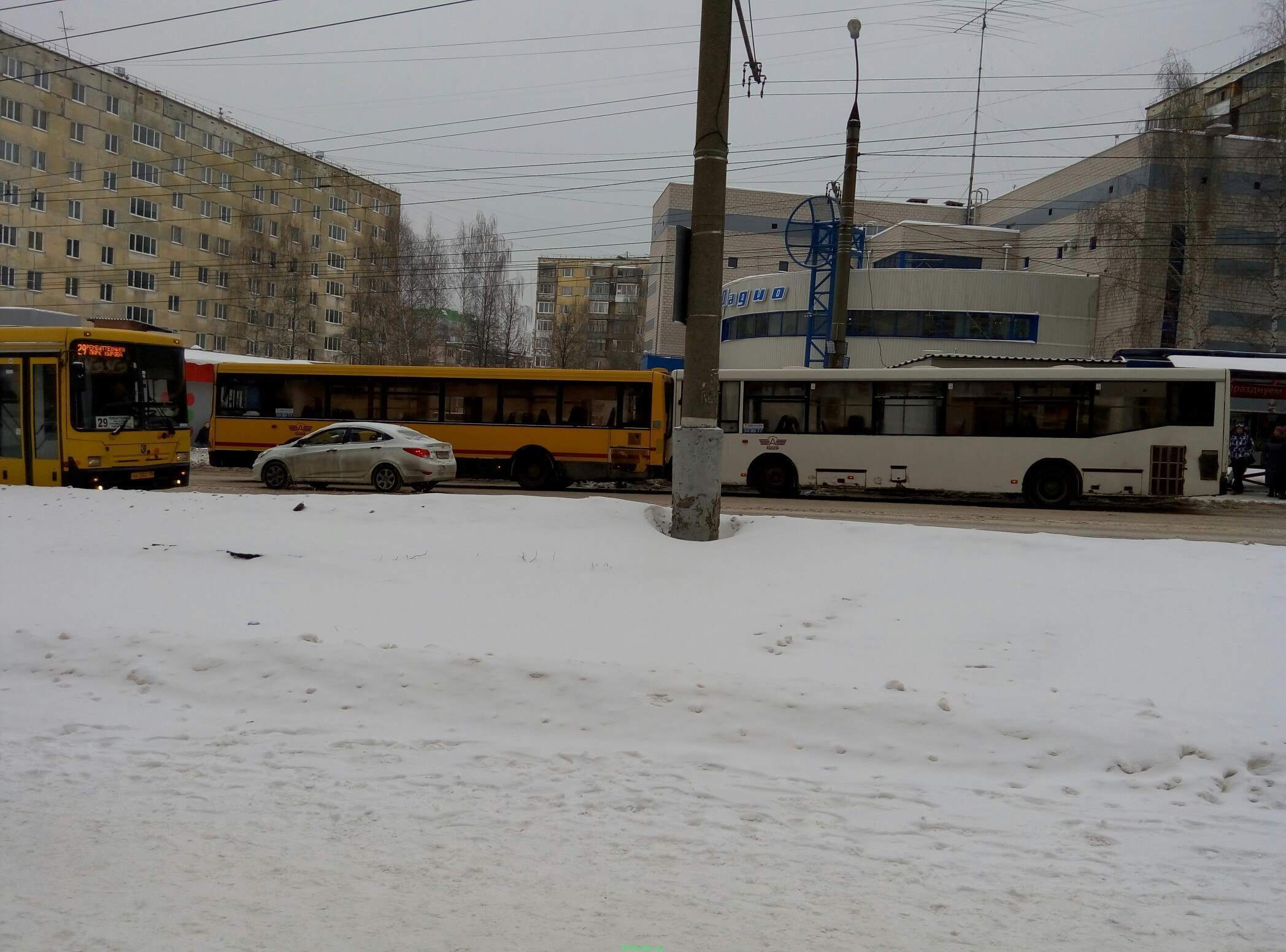 15.01.2016 ДТП на остановке ул. Петрова около магазина Радио, автобусы притянулись друг к другу.