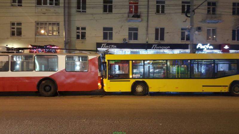 14.01.2016 ДТП на ул. Советская около Детского мира. Автобус обиделся на троллейбус. Занята правая полоса при движении из центра