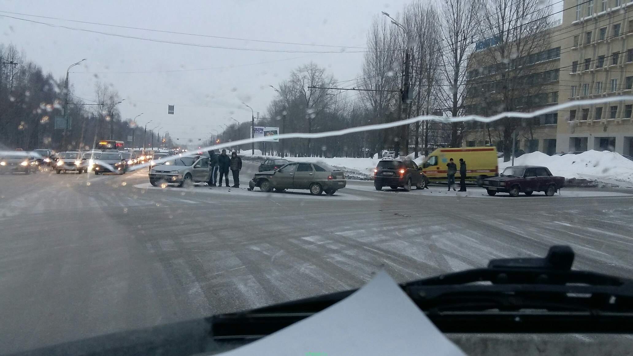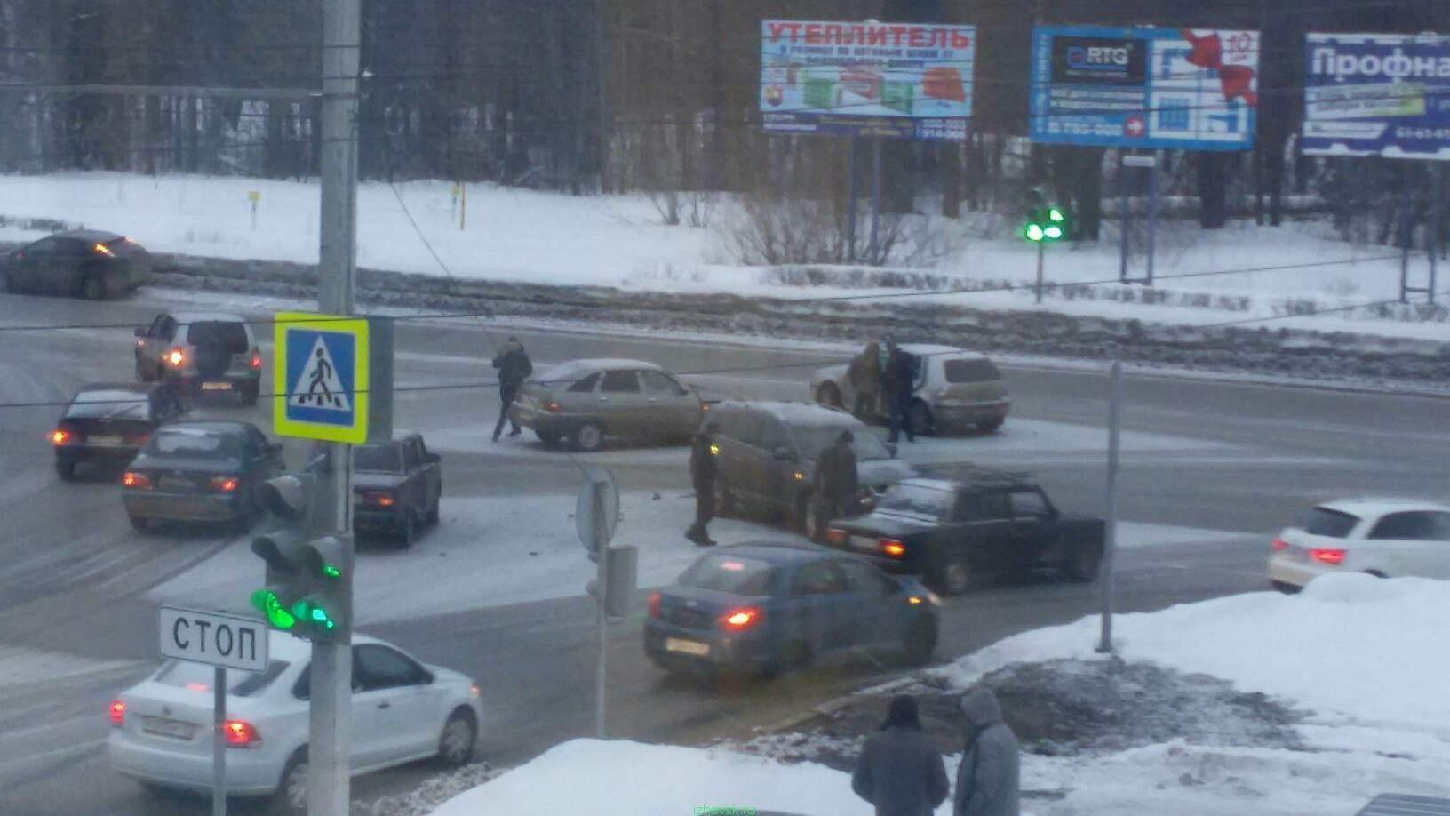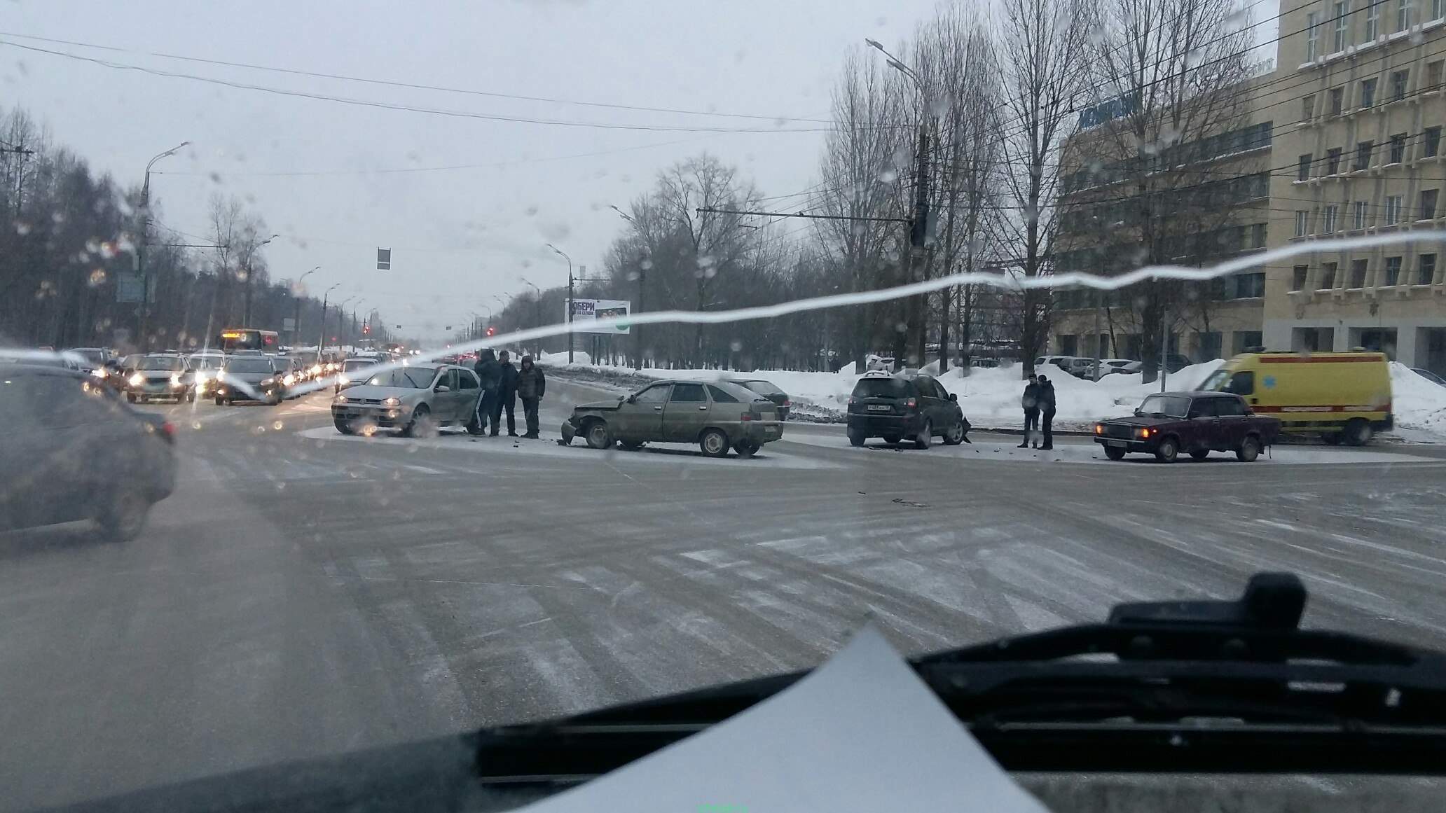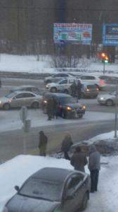 08.02.2016 Момент #ДТП на перекрестке ул. 9 Января и Воткинское шоссе. Столкнулись 4 авто.