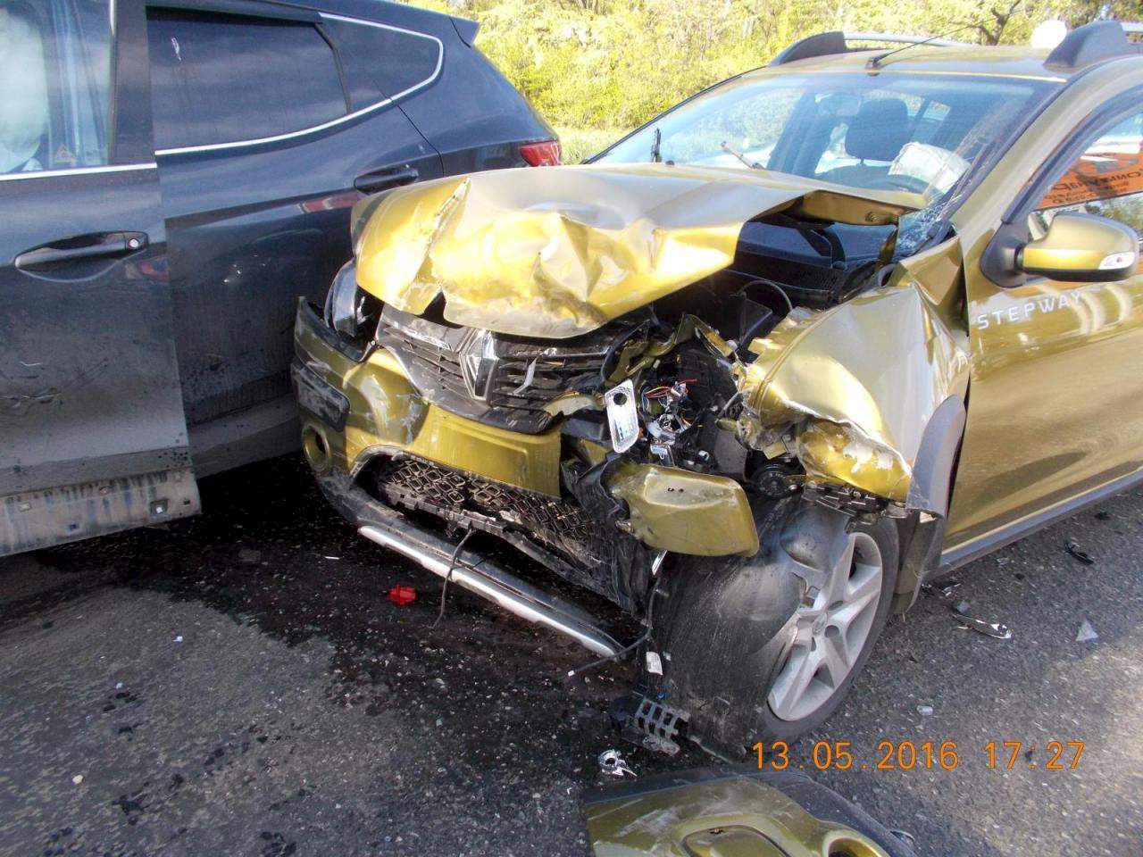 13 мая 2016 года около 17 часов на 1 км Якшур Бодьинский тракт (Октябрьский район города Ижевска), водитель автомобиля "Хендэ" - женщина 1990 года рождения (стаж управления транспортными средствами составляет 1 месяц), при выезде на дорогу с прилегающей территории, не предоставила преимущества в движении и совершила столкновение с автомобилем "Рено" под управлением мужчины 1954 года рождения. В результате ДТП водитель автомобиля "Хендэ" получила травмы, водитель автомобиля "Рено" и его пассажир - женщина 1958 года рождения также получили травмы.
