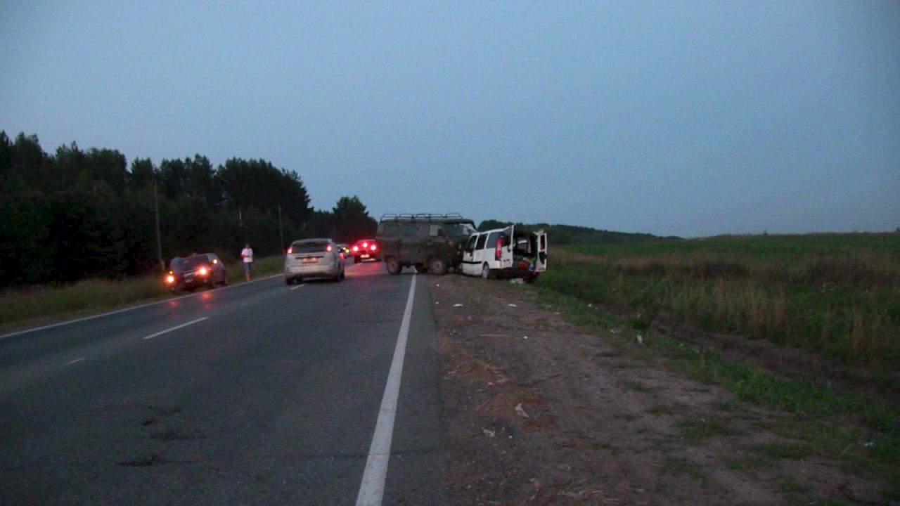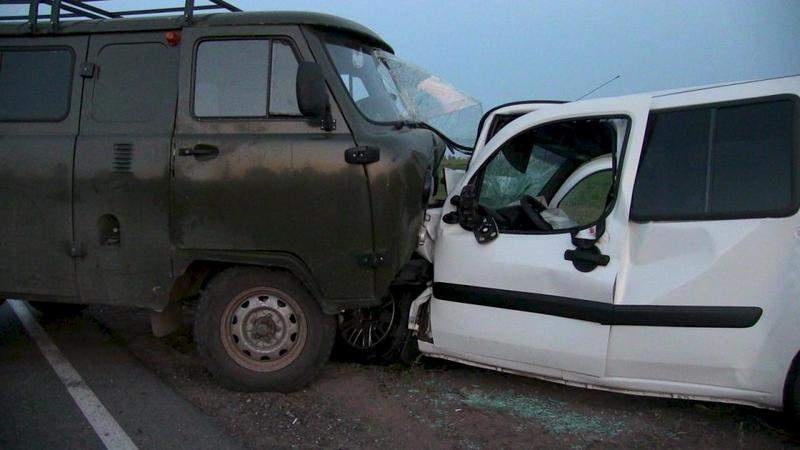 ДТП на Нылгинком тракте, около сов. Никольское. Обошлось без погибших. Столкнулись УАЗ-"буханка" и "Фиат Добло".