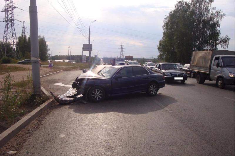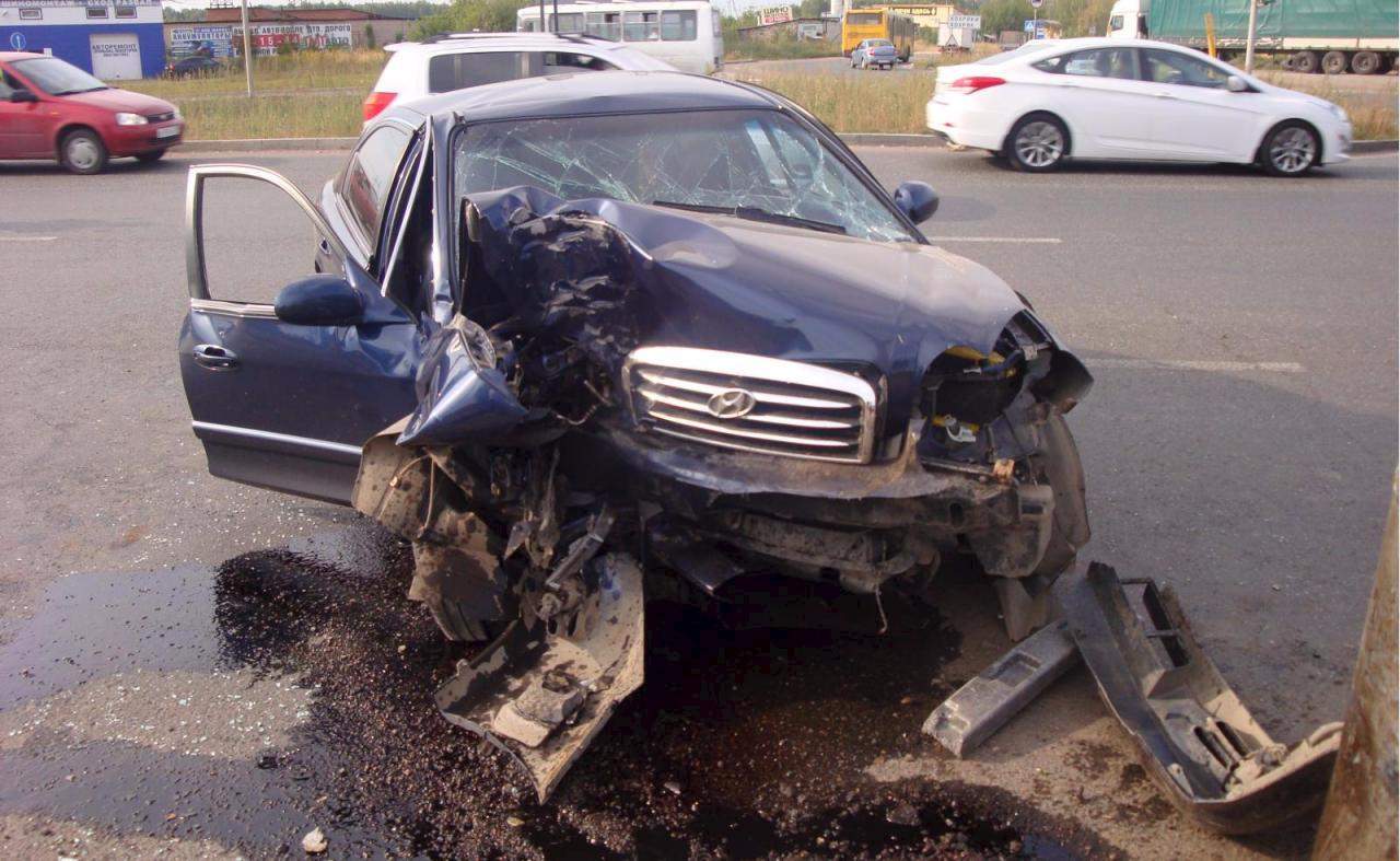 - Водитель автомобиля Hyundai Sonata не справился с управлением и врезался в световую опору.