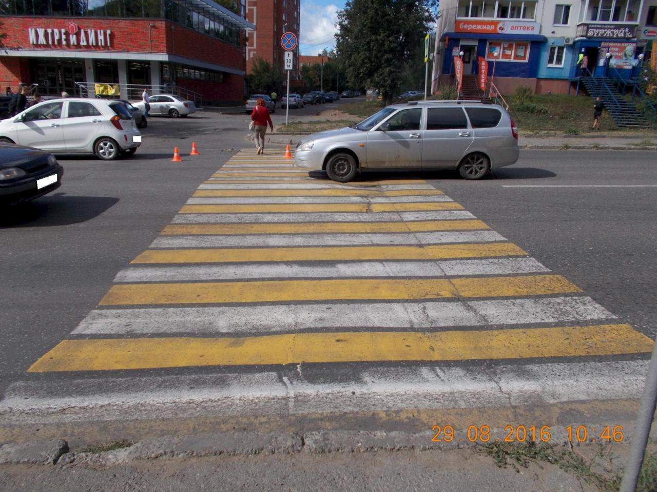 29 августа 2016 года, около 10 часов, напротив дома 19 <а> по ул. 30 лет Победы г. Ижевска, водитель автомобиля <Киа-пиканто>- мужчина, 1995 года рождения (стаж управления транспортным средством 1 год), на нерегулируемом пешеходном переходе совершил наезд на мать с ребенком (женщину 1978 года рождения с 8-летним мальчиком). В результате наезда оба пешехода с травмами госпитализированы.