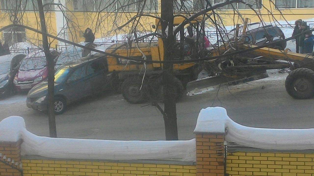 - как рассказывают очевидцы, у грейдера отказали тормоза, а водитель техники сегодня первый раз вышел на работу.