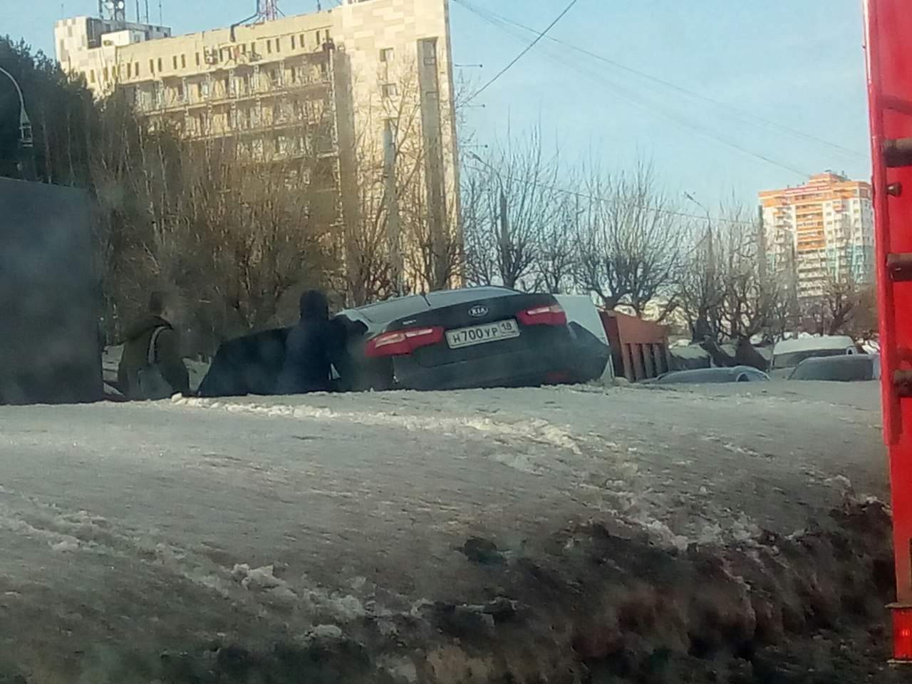 Необходимо отметить, что водитель автомобиля "BAW FENIX 1044" не был пристегнут ремнем безопасности. Ремень безопасности данного водителя был пристегнут на манер "для ГИБДД" - за спиной водителя:
