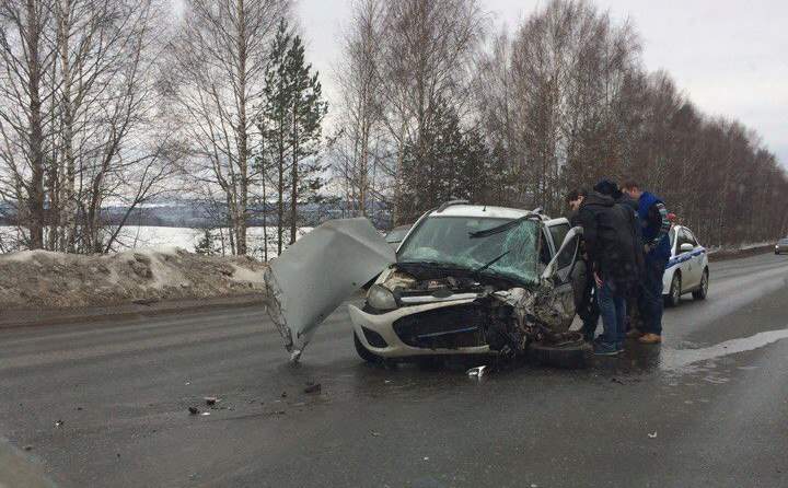9 апреля 2017 года около 15:15 на 17 километре автодороги ;Ижевск-Воткинск; 24-летний водитель автомобиля ;ВАЗ; выехал на сторону дороги, предназначенную для встречного движения, и столкнулся с микроавтобусом ;ГАЗ;, следовавшим по маршруту ;Ижевск-Шаркан; под управлением 34-мужчины. В результате происшествия получили травмы и были доставлены в медицинское учреждение водитель легкового автомобиля и два пассажира микроавтобуса. По предварительным данным водитель автомобиля ;ВАЗ; заснул при управлении автомобилем.