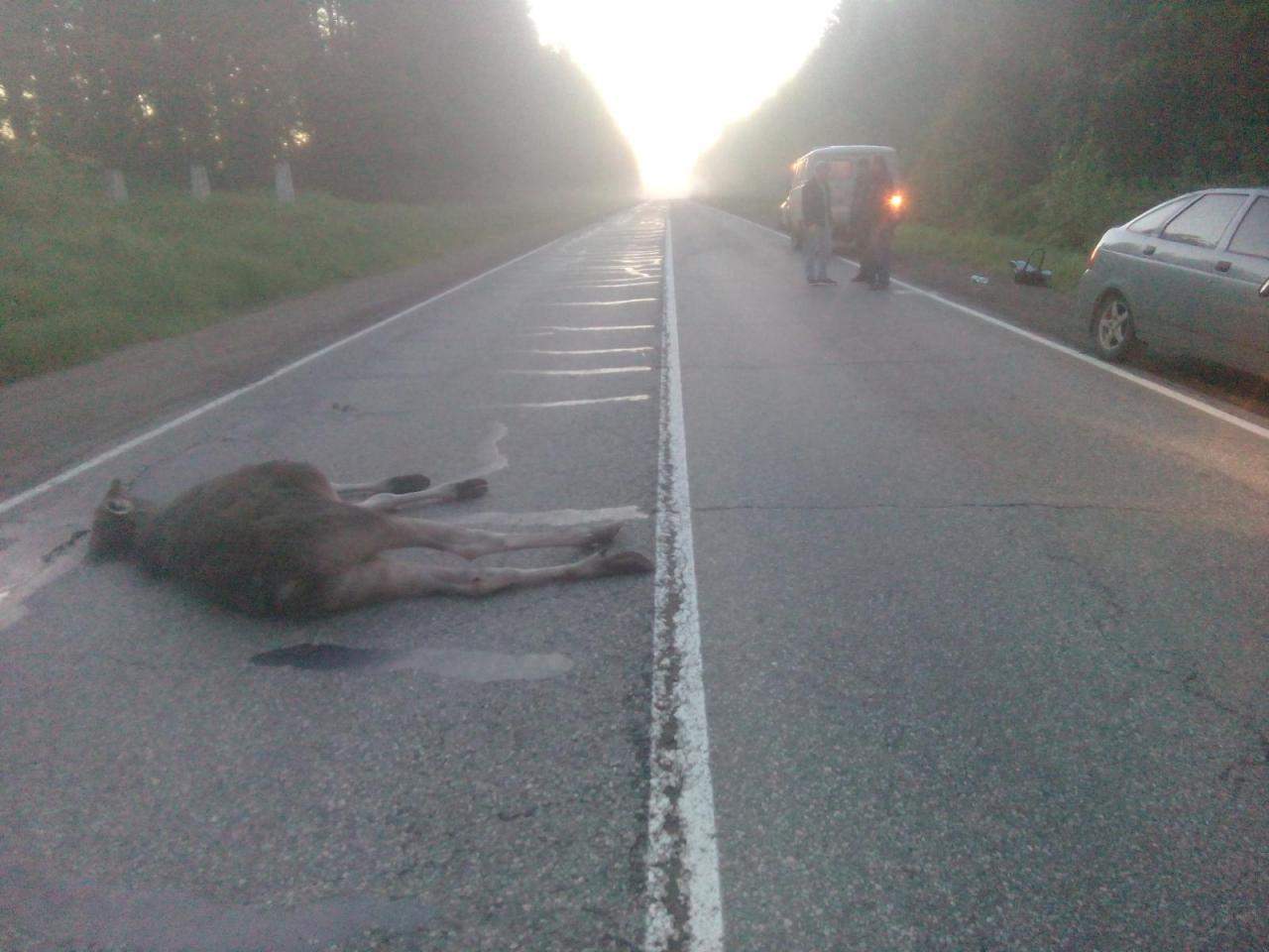 16.06.2017 ДТП с наездом на лося на Якшур-Бодьинском тракте, перед постом ДПС в сторону Якшур-Бодьи.