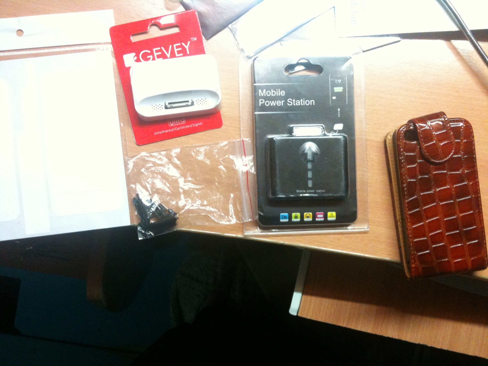 Есть док станции для iPhone 3G/3GS/4,плёнки для этих устройств(зеркальные и прозрачные),заглушки в разъёмы,gevey ultra, автозарядки,вебкамеры(на 5 и 12 мегапикселей с подсветкой и микрофоном),usb звуковая карта,чехлы для iPhone 3G/3GS/4,iPod(флип чехлы,резиновые,защитные задние крышки),комплект SPG для защиты iPhone 3G/3GS белого цвета,видеорегистратор,дополнительная батарея(очень стильная и небольшая по размеры),обычная батарея для iPhone 3G/3GS и другие аксессуары.Если что спрашивайте.Спешите купить подарки себе,друзьям,родным и близким).