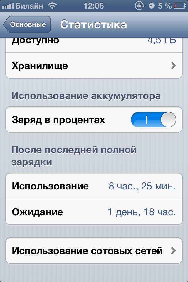 А так в среднем 7+ часов использования. Думаю такое не реально на 4s и 5, из-за чего не хочу пока менять 4ку. Еще полезно включать авиарежим на ночь. | |||