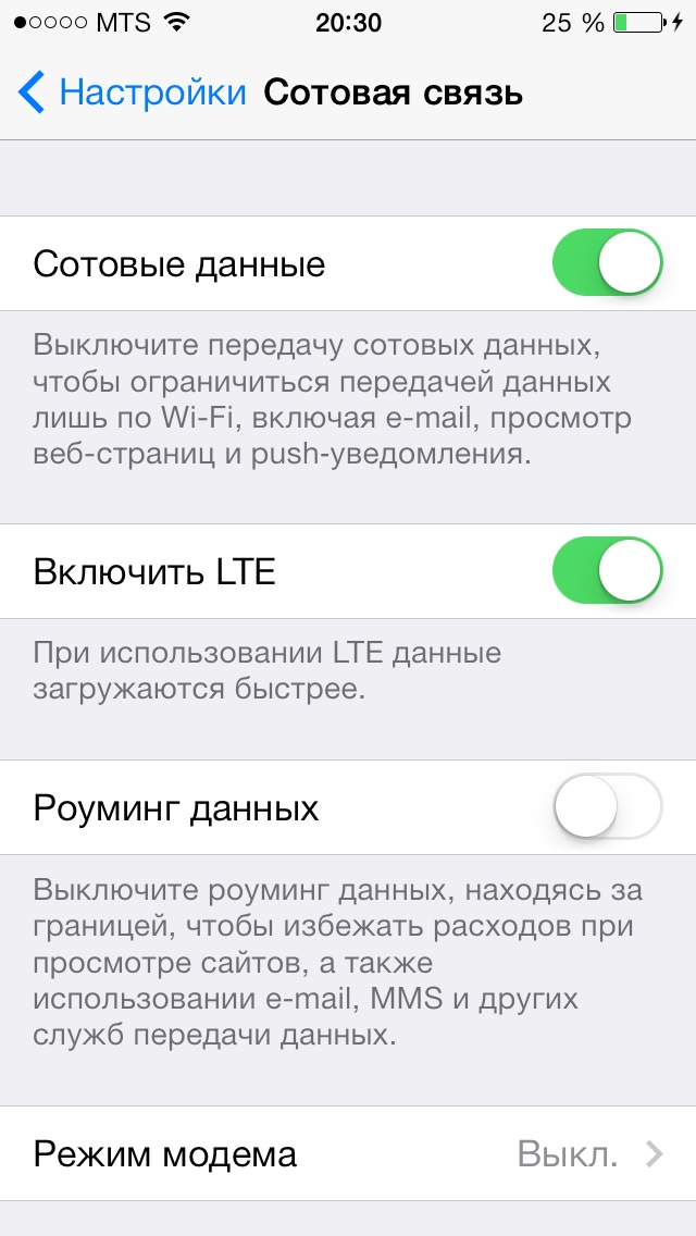 Как включить LTE на iPhone 5s/5c у МТС и Мегафона: