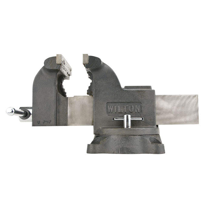 Тиски Wilton Мастерская - сверхмощные литые чугунные тиски для тяжёлых работ с дополнительным запасом прочности. Усилие зажима 30,000 PSI (2109 кг/см2). Имеется возможность для обработки труб, а также монтаж на верстак при помощи четырёх болтов для придания большей стабильности и безопасности конструкции.