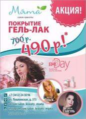 Салон красоты МЯТА рад предложить Вам полный спектр услуг: - Стрижки/окрашивания - Уход за волосами (кератин, ботокс, флисинг, коллагеновое обертывание) - Маникюр/педикюр - Покрытие гель-лак - Художественное оформление бровей - Наращивание ресниц (классика, 2D, 3D) - Ламинирование ресниц - Макияж - Массаж - Шугаринг и самое главное по приемлемым ценам!