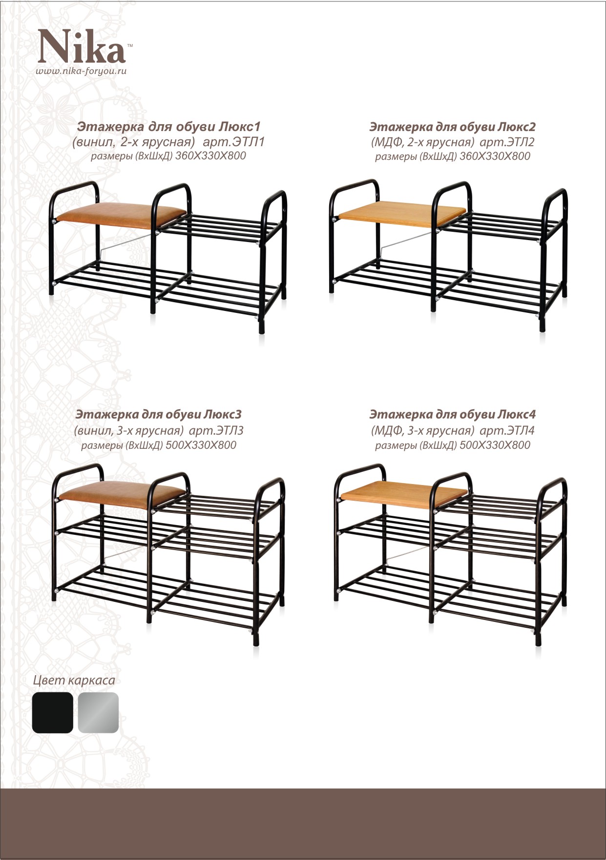 Этажерка для обуви 4-уровневая на 2 полки. Основа - металлокаркас. Возможна установка полок на любой удобный уровень высоты.