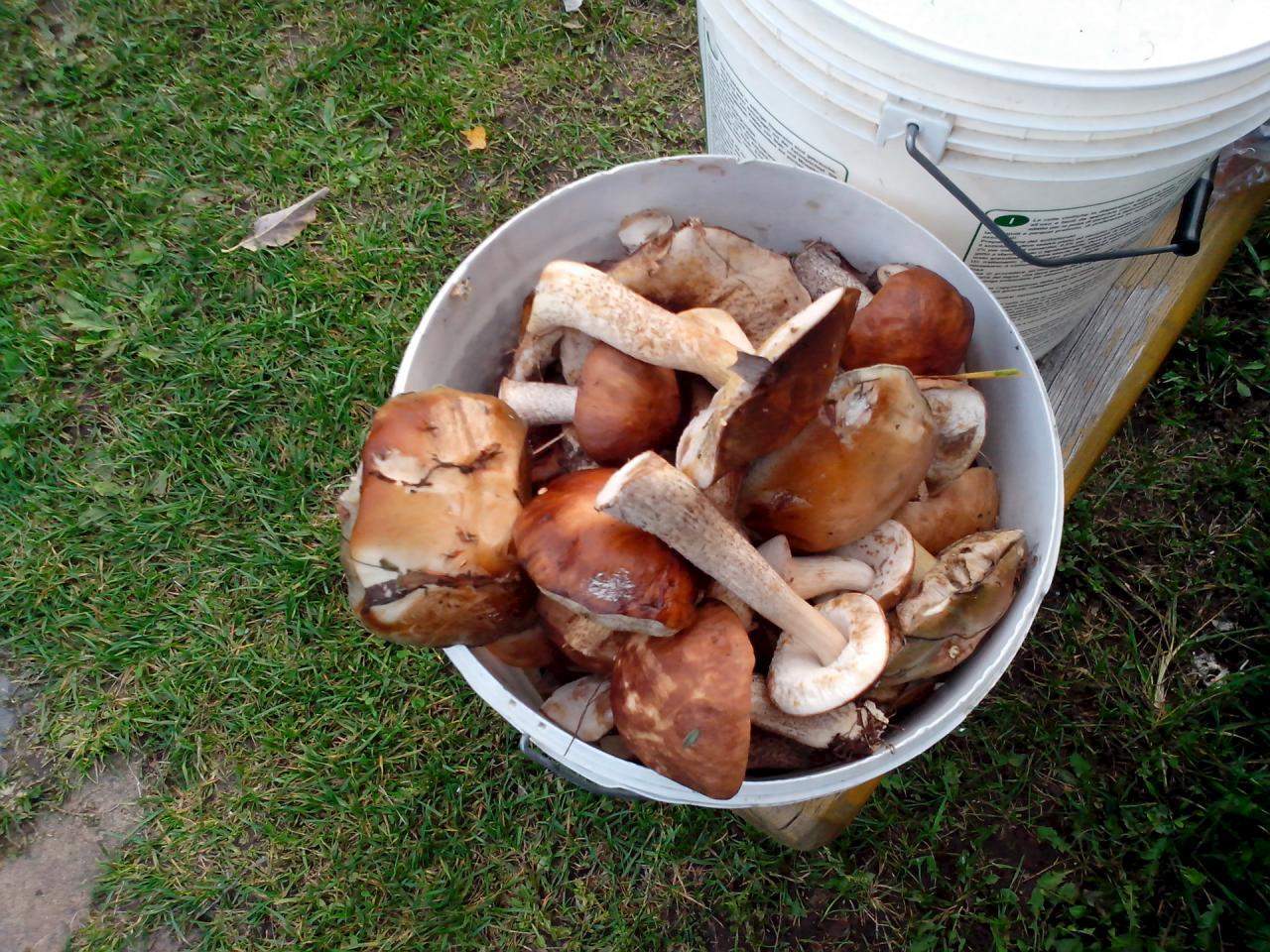 Сейчас в наличии примерно 2 семилитровых ведра белых, одно обабков, одно красноголовиков.