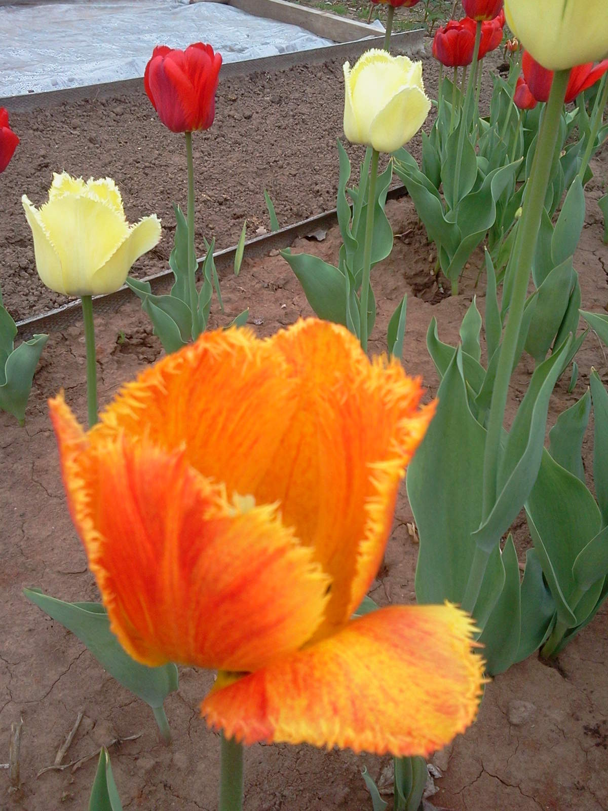 Тюльпаны все высокие, крупные, яркие. У желтых и оранжевых - края лепестков бахромчатые.20-30р луковица