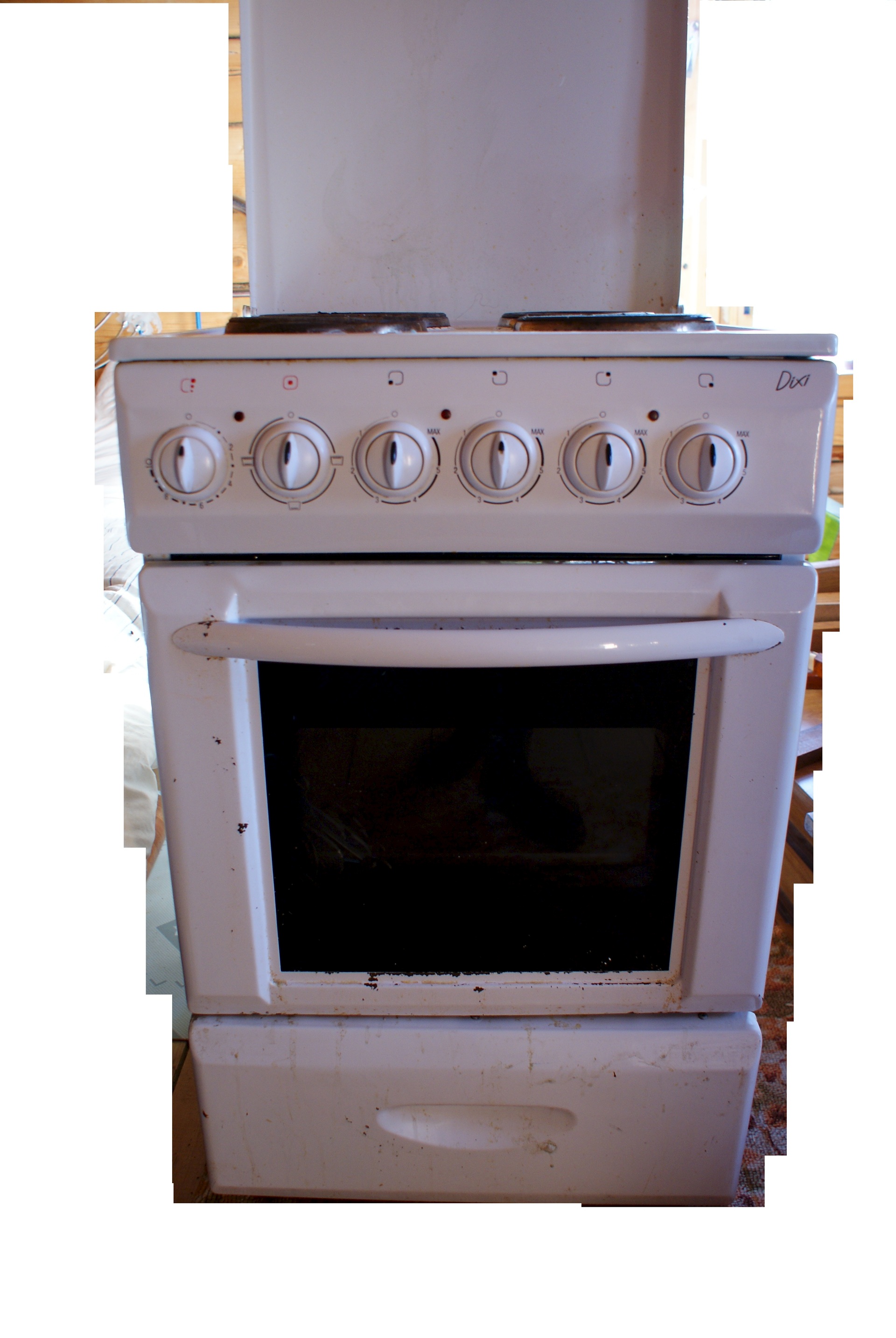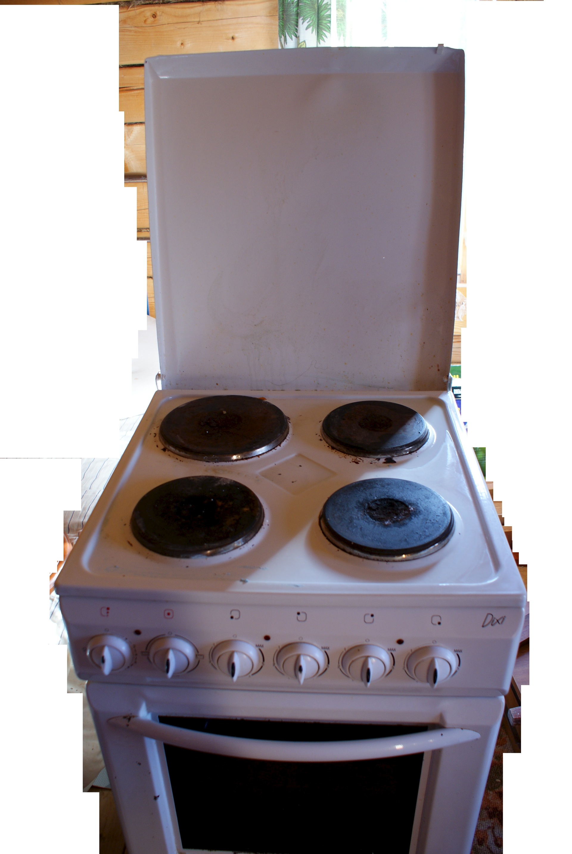 б\у 5 лет, плита рабочая, конфорки греют, духовка работает. внешний вид - средний - местами слезает эмаль.
