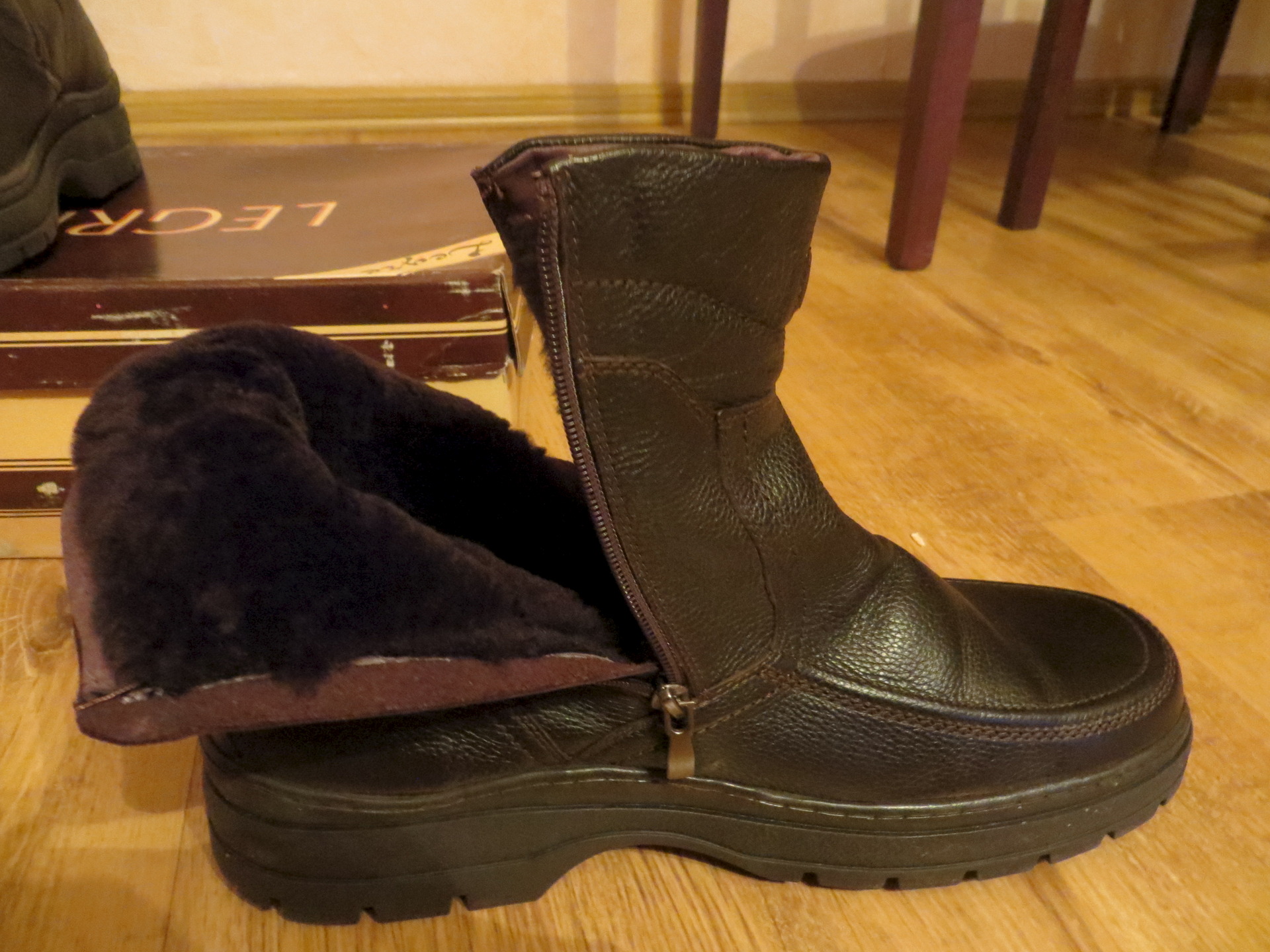Продам мужские ботинки. Новые. Размер 45. Цвет темно-коричневый. Натуральная кожа, натуральный мех. Цена 1000 руб.