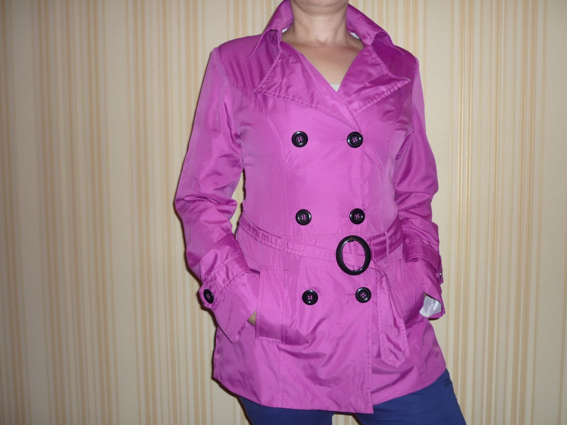 Продам женский плащ, размер 46, 100% полиэстер, на теплую погоду. Цвет фуксия, про-во Россия. Б\у совсем немного, состояние хорошее. Цена 300 руб. Район Главпочтампта.