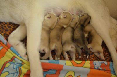 В помете 1 мальчик и 5 девочек палевого и серого окрасов.