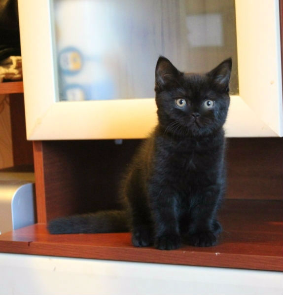 Черная кошечка Айса. Плюшевая барахатистая шерсть, круглая породная голова, очень красивая девочка.