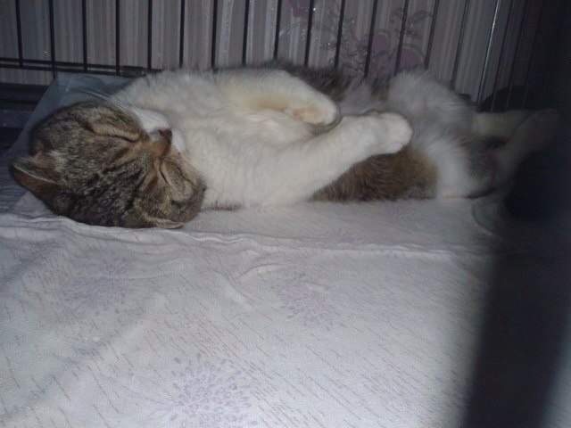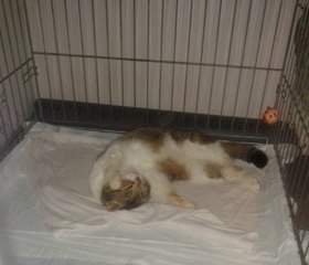 Котику проведен первичный осмотр, поставлена сыворотка и обработан от паразитов. К сожалению, перелом у котика зарос и уже никто не возьмется ему его вправлять. Наш Хек, так мы решили пока его назвать, будет прихрамывать на заднюю левую лапу, хотя это ему не мешает жить полноценно.