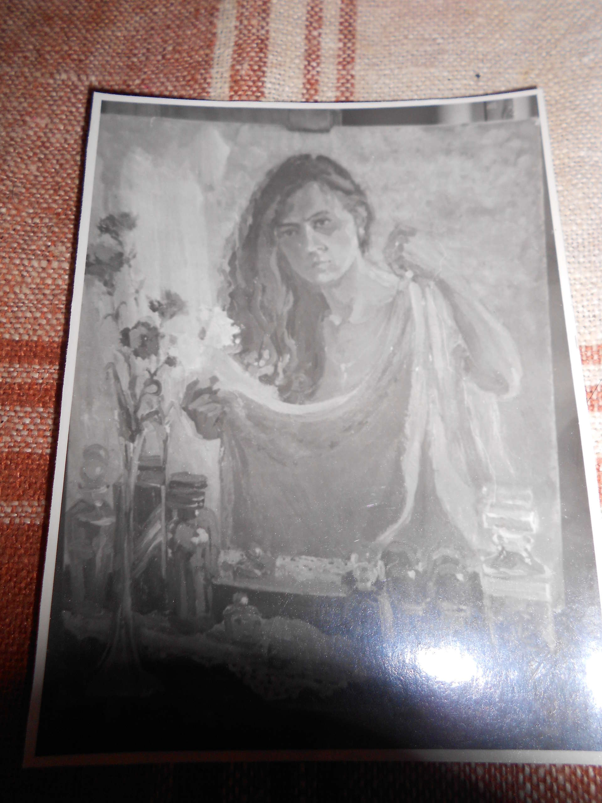 ее дипломной работой были 3 портрета маслом один из которых автопортрет на котором соответственно моя мама в положении